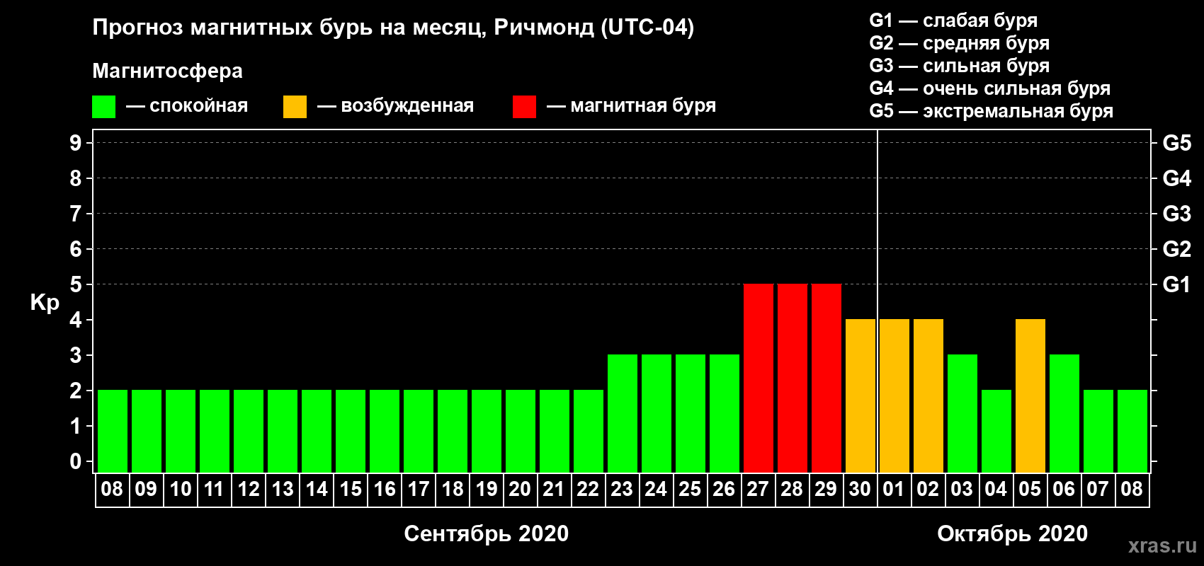 Прогноз магнитных бурь в Ричмонде — 8 сентября 2020 года