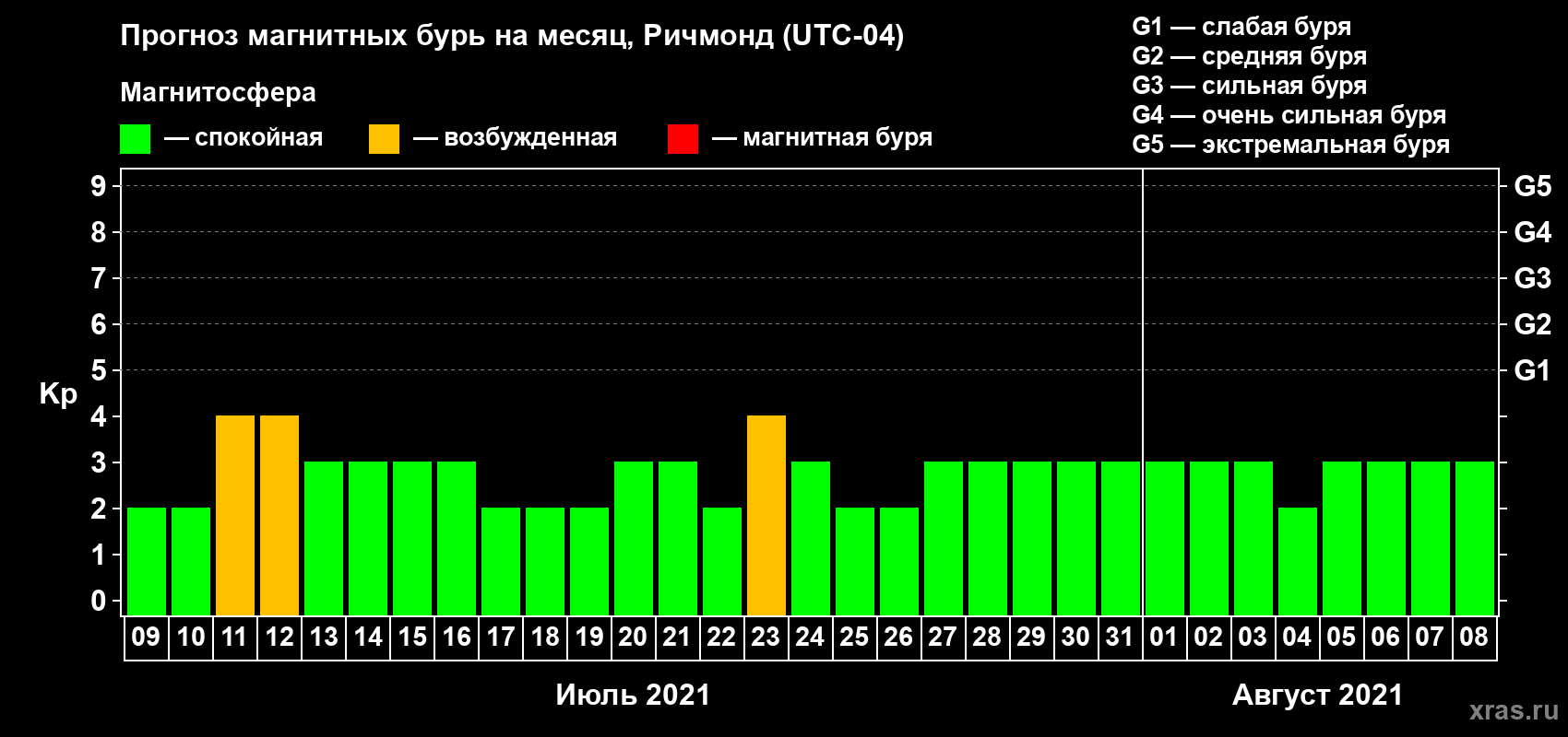 Прогноз магнитных бурь в Ричмонде — 9 июля 2021 года