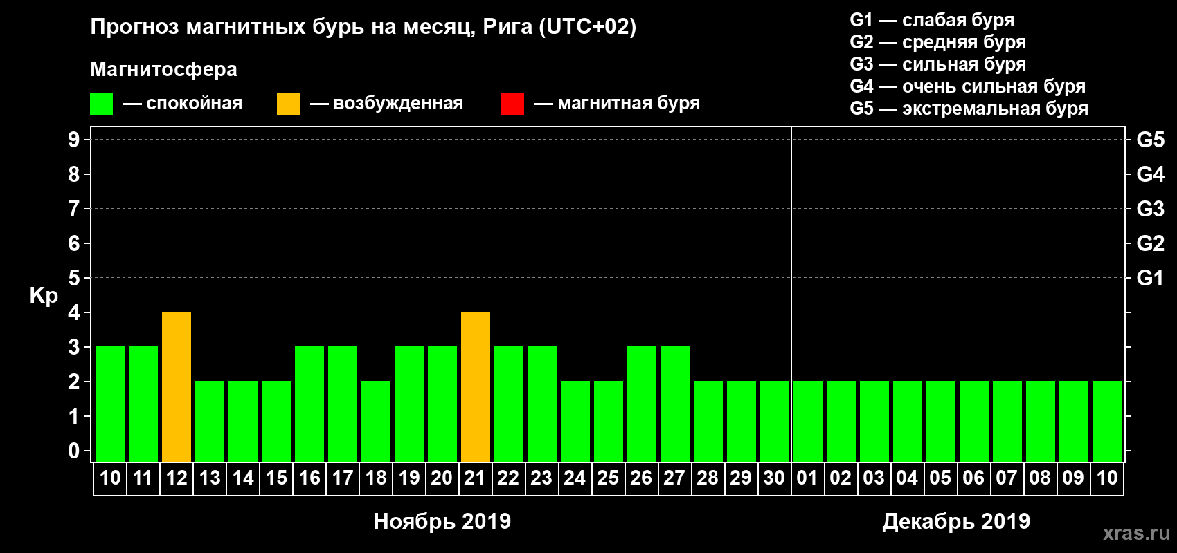 Прогноз магнитных бурь в Риге — 10 ноября 2019 года