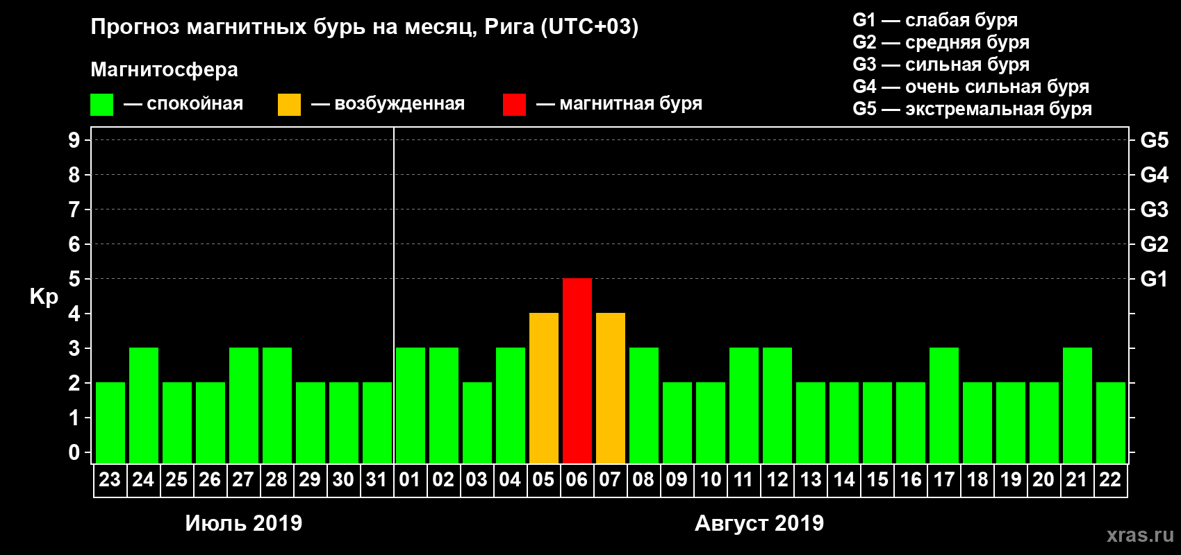 Прогноз магнитных бурь в Риге — 23 июля 2019 года