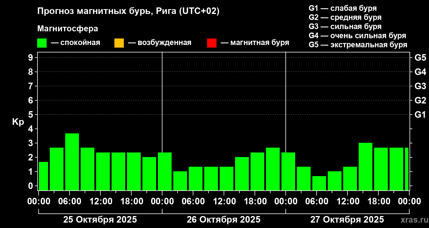 Прогноз магнитных бурь в Риге — 25 октября 2025 года