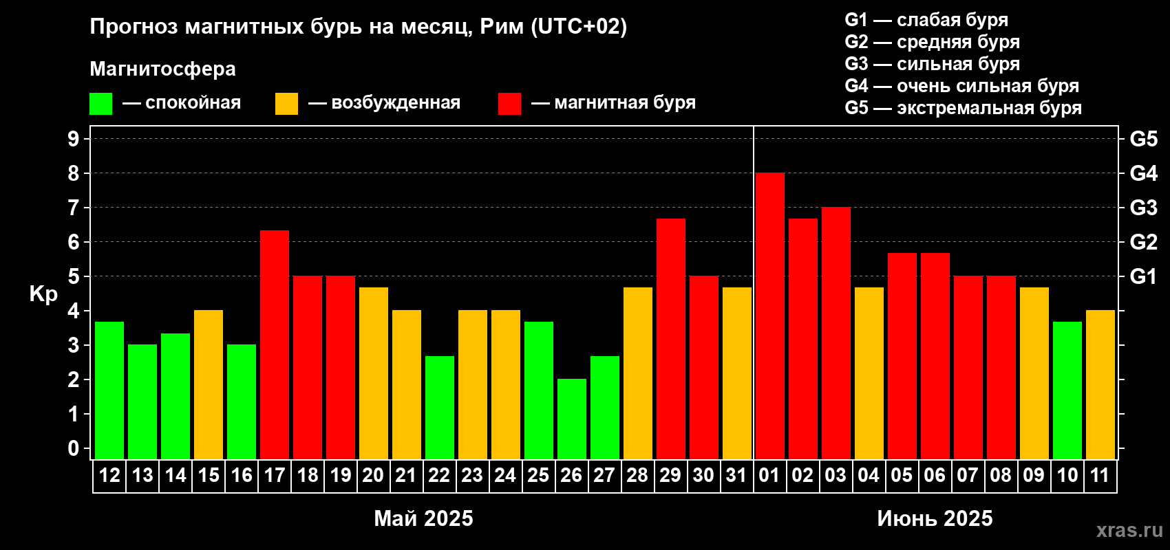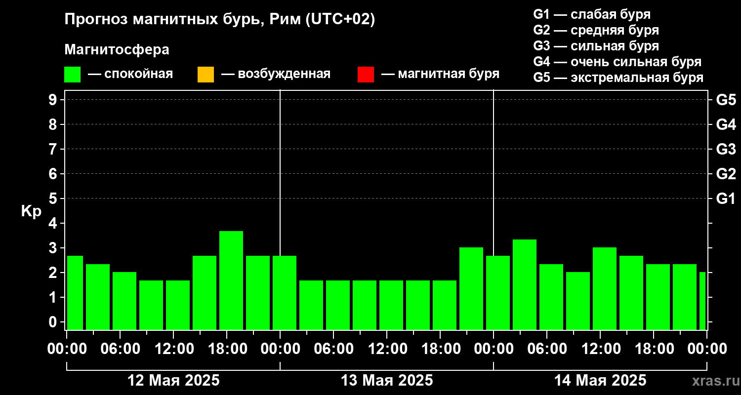 Прогноз магнитных бурь в Риме на 12 мая 2025 года