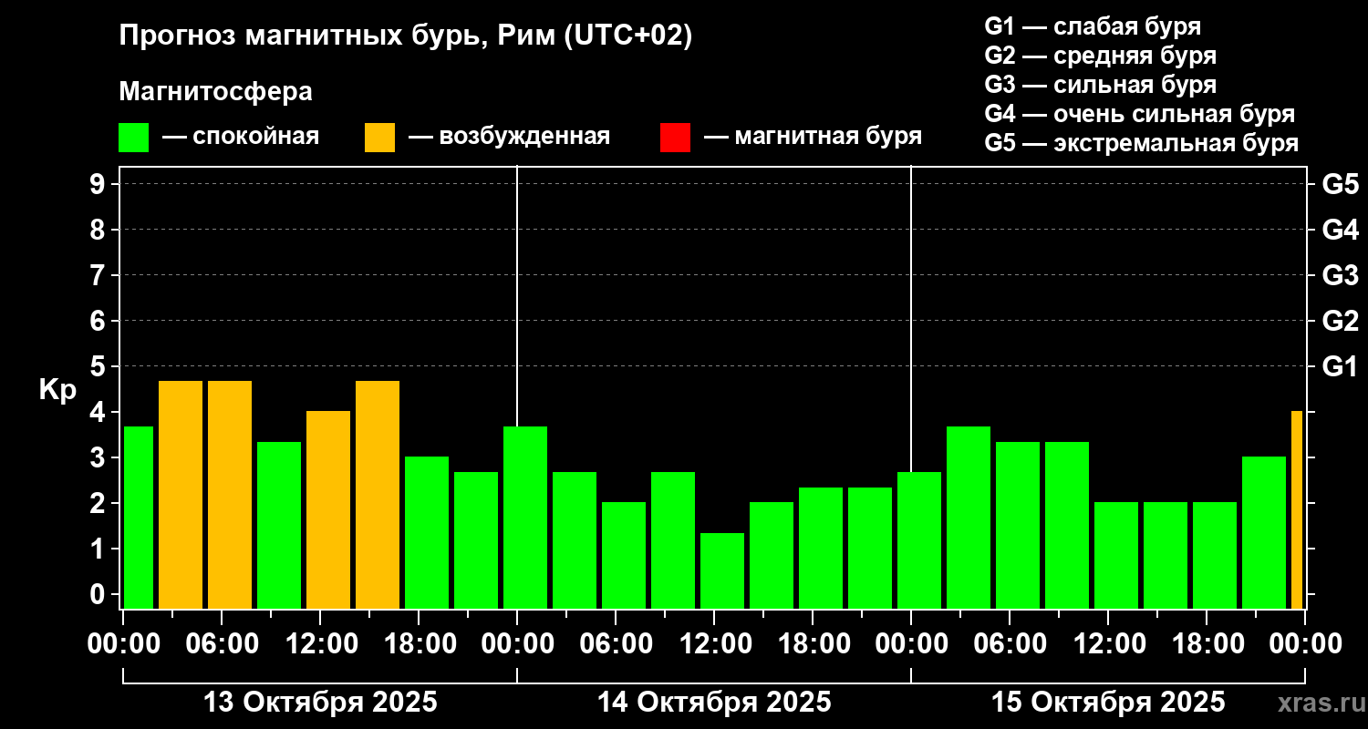 Прогноз магнитных бурь в Риме на 13 октября 2025 года