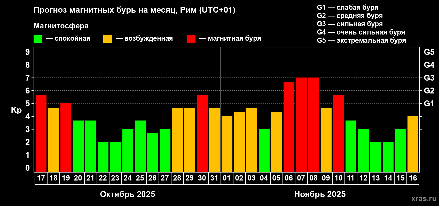 Прогноз магнитных бурь в Риме на 17 октября 2025 года