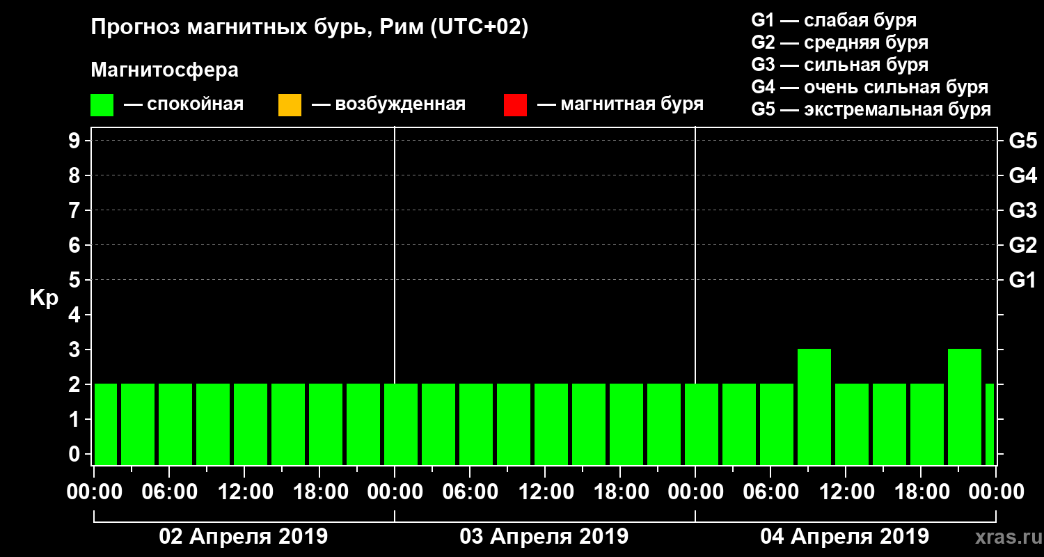 Прогноз магнитных бурь в Риме — 2 апреля 2019 года