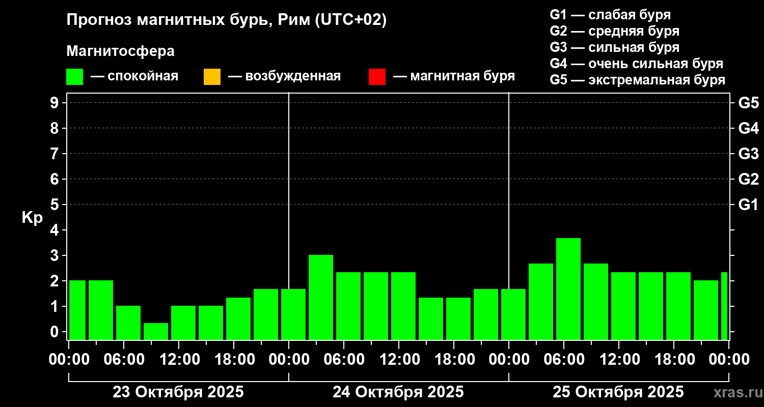 Прогноз магнитных бурь в Риме на 23 октября 2025 года