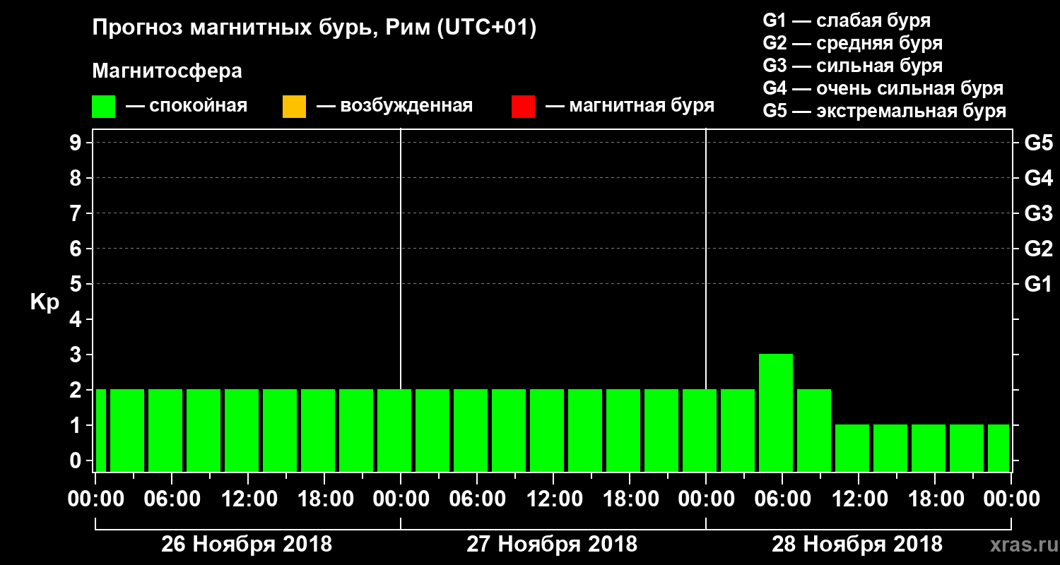 Прогноз магнитных бурь в Риме — 26 ноября 2018 года