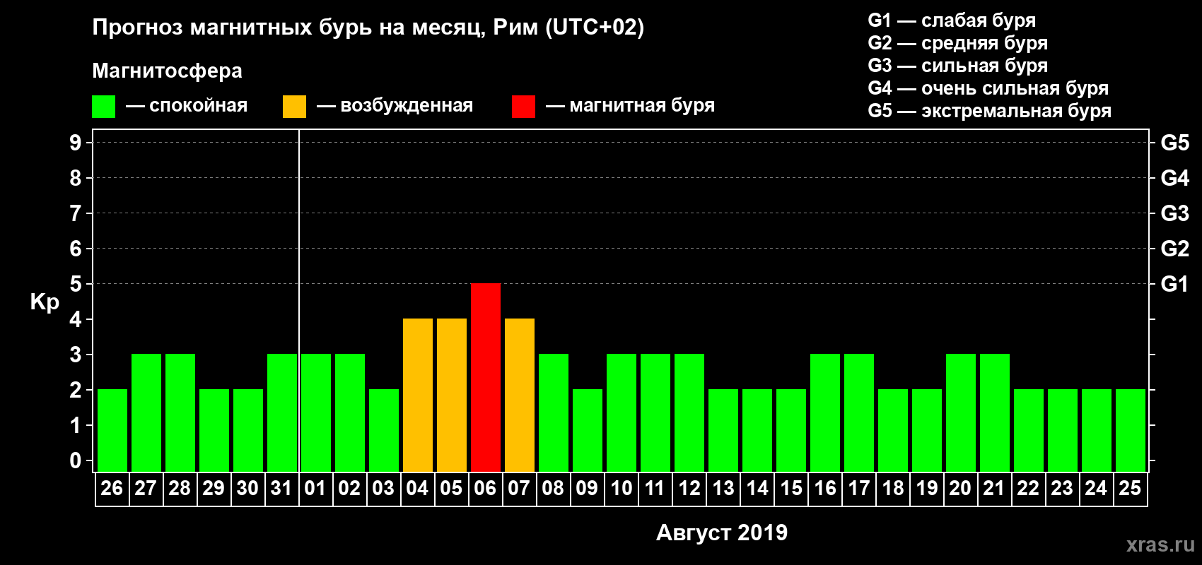 Прогноз магнитных бурь в Риме на 26 июля 2019 года