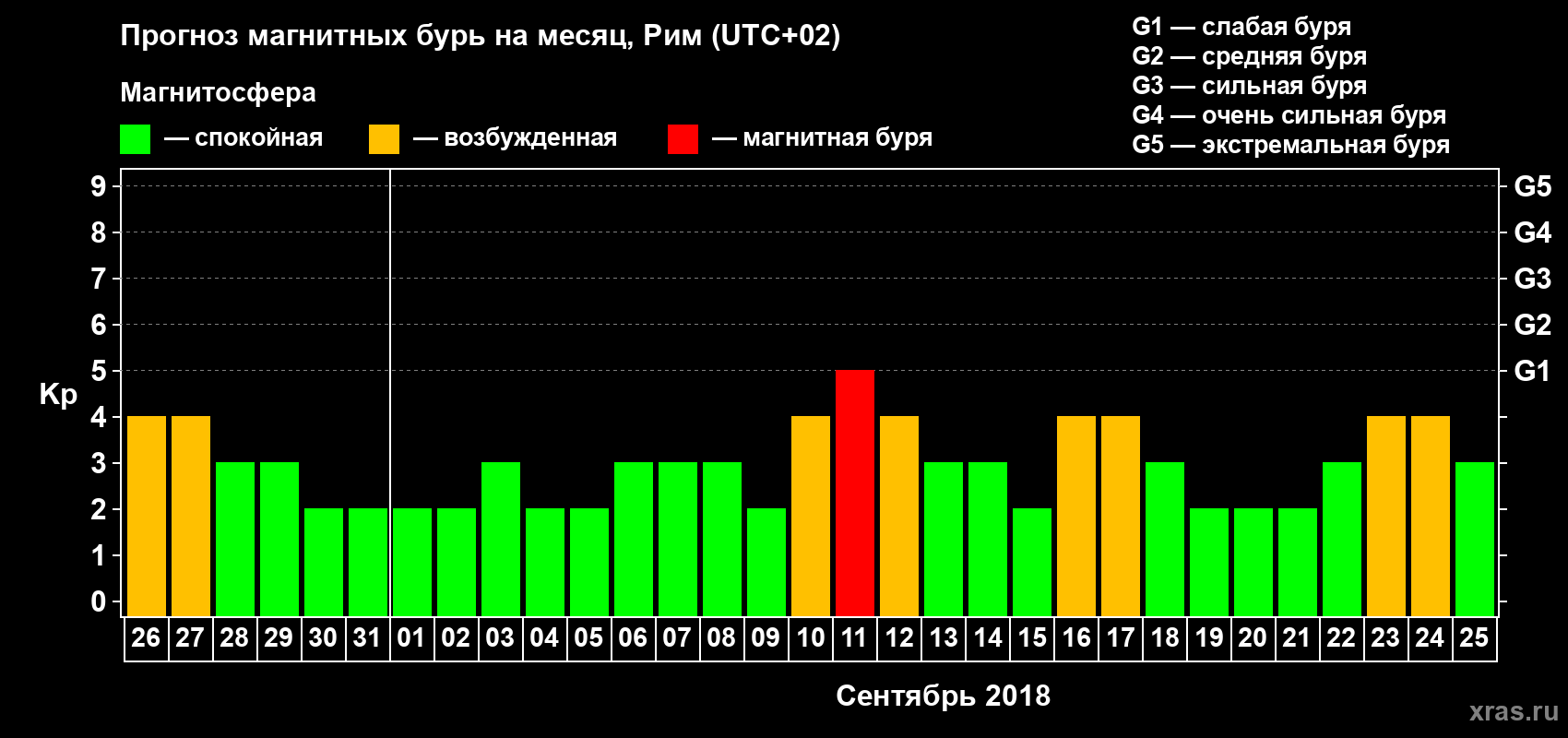 Прогноз магнитных бурь в Риме на 26 августа 2018 года