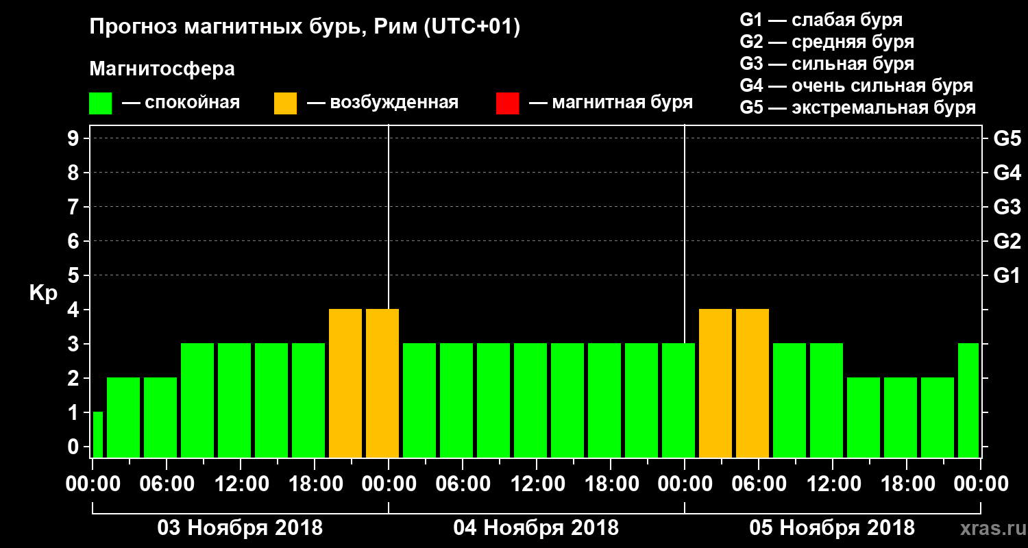 Прогноз магнитных бурь в Риме — 3 ноября 2018 года