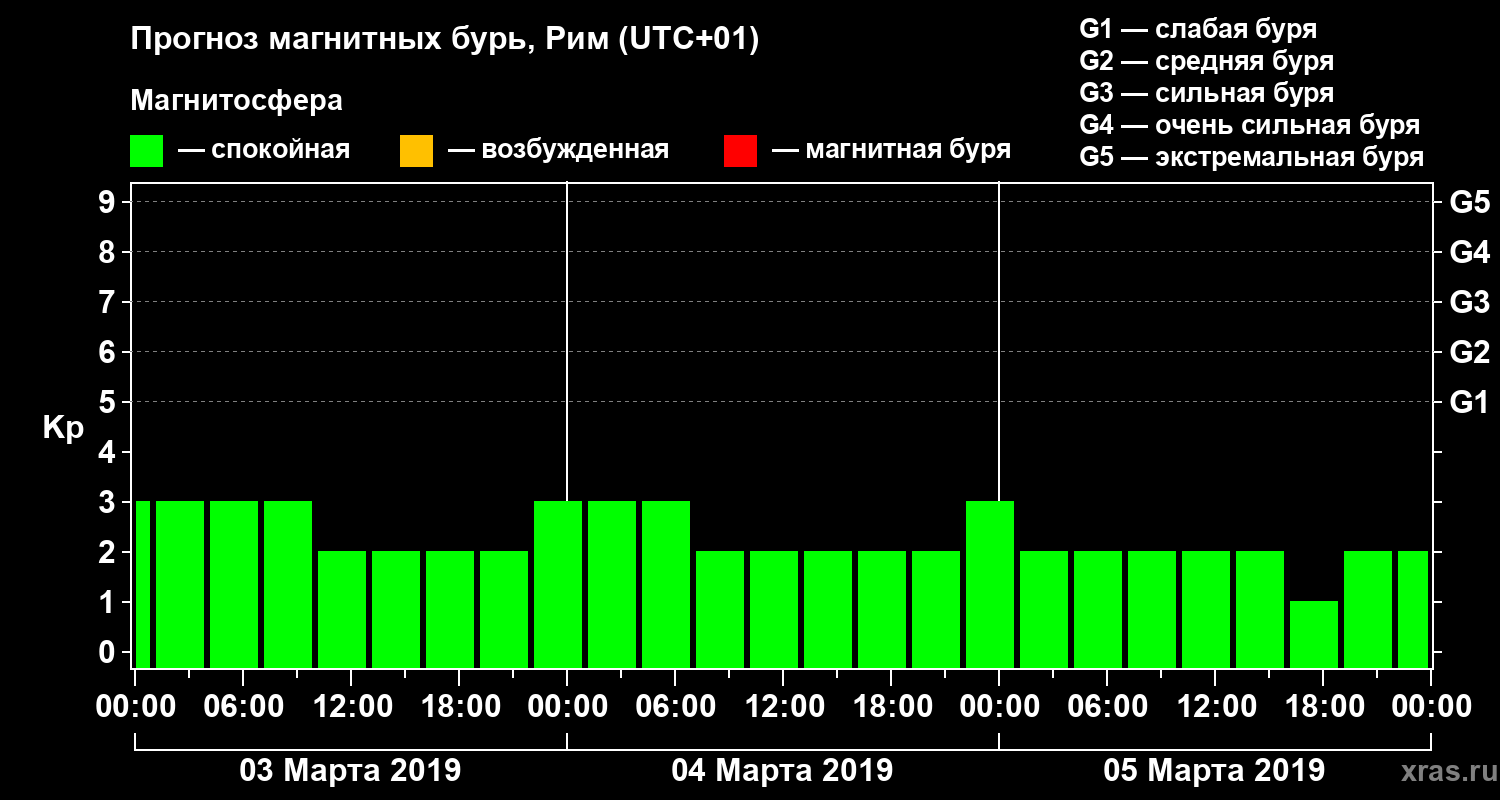 Прогноз магнитных бурь в Риме — 3 марта 2019 года