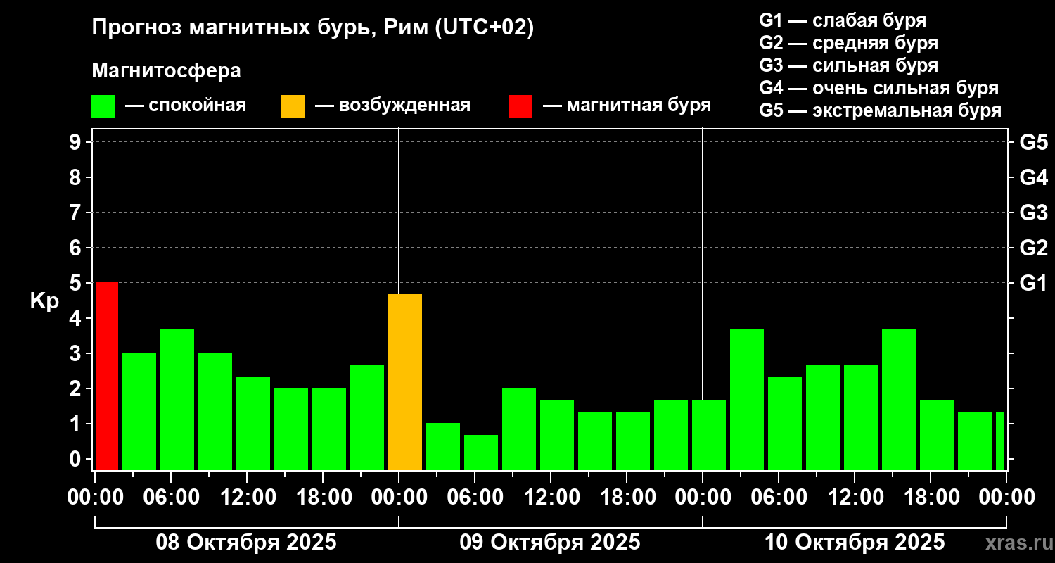Прогноз магнитных бурь в Риме на 8 октября 2025 года