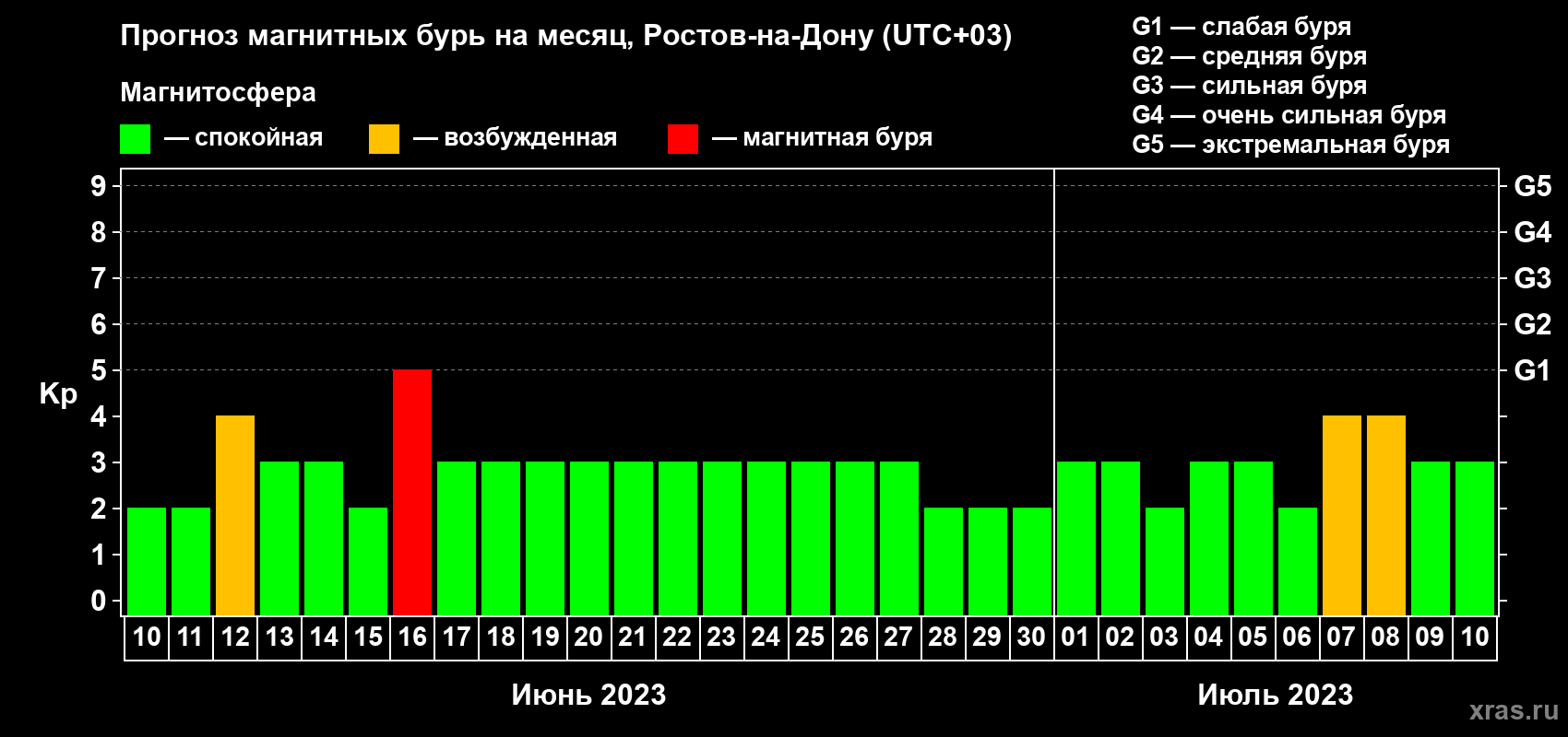Прогноз магнитных бурь Ростове-на-Дону на 10 июня 2023 года