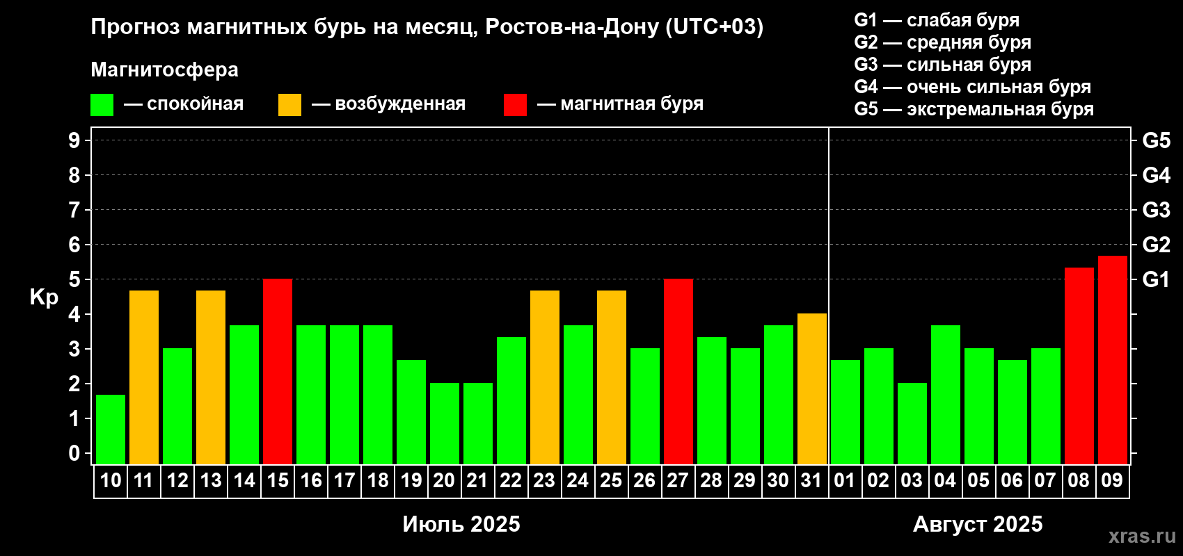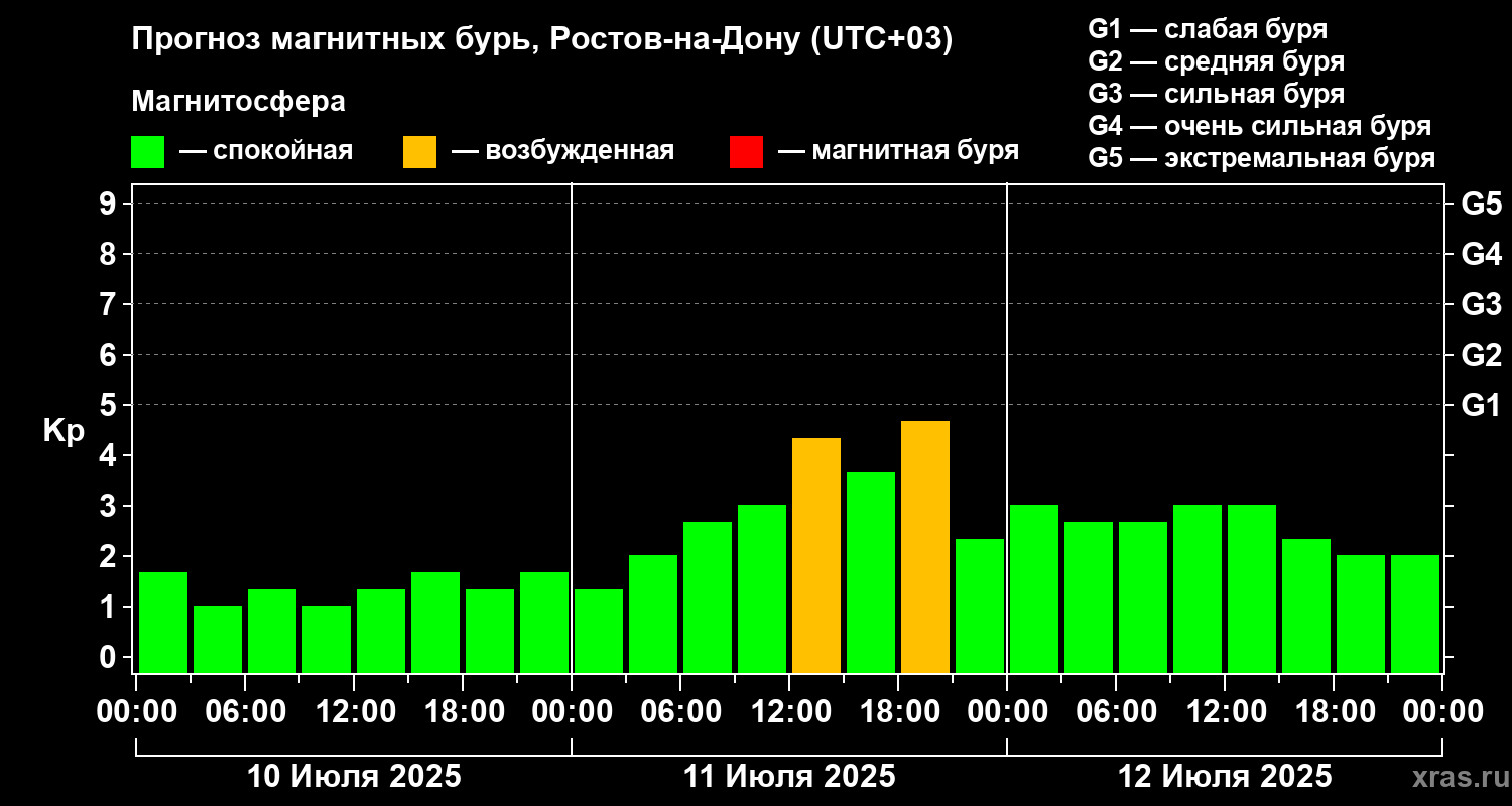 Прогноз магнитных бурь Ростове-на-Дону — 10 июля 2025 года