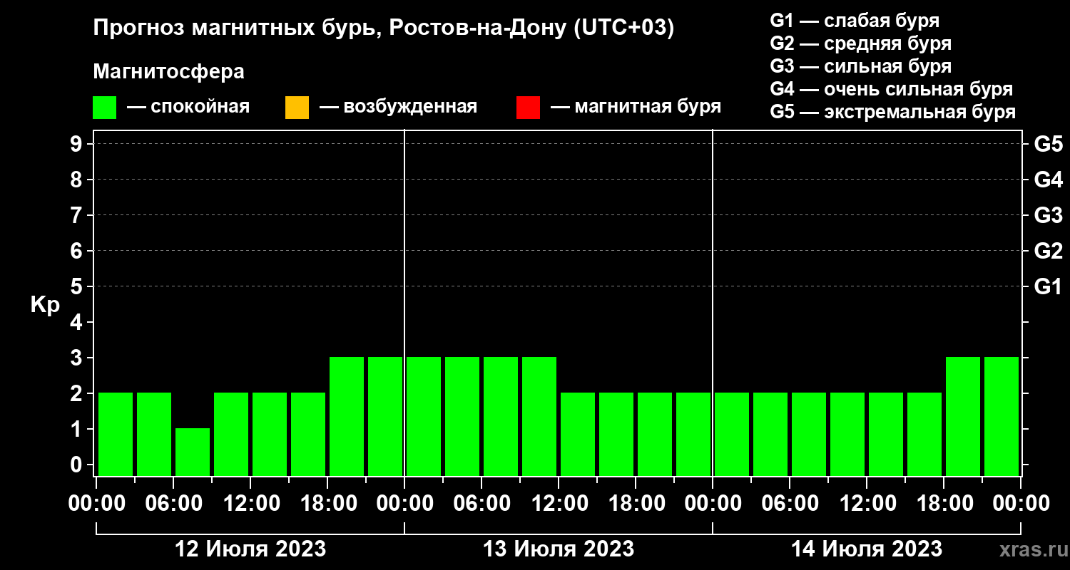 Прогноз магнитных бурь Ростове-на-Дону — 12 июля 2023 года