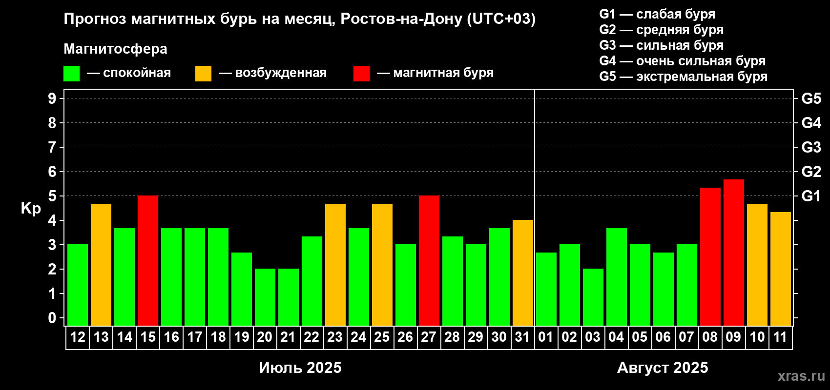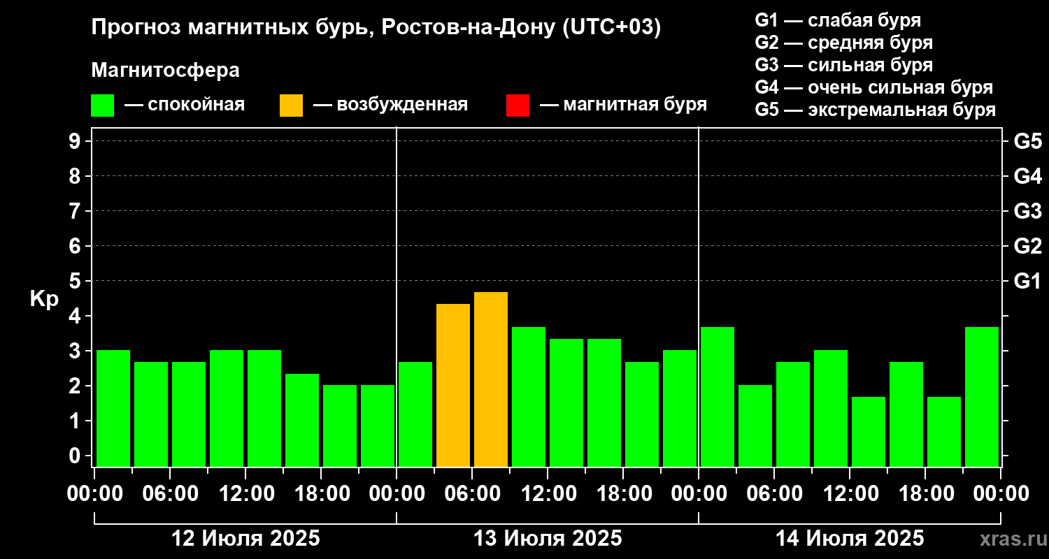 Прогноз магнитных бурь Ростове-на-Дону — 12 июля 2025 года