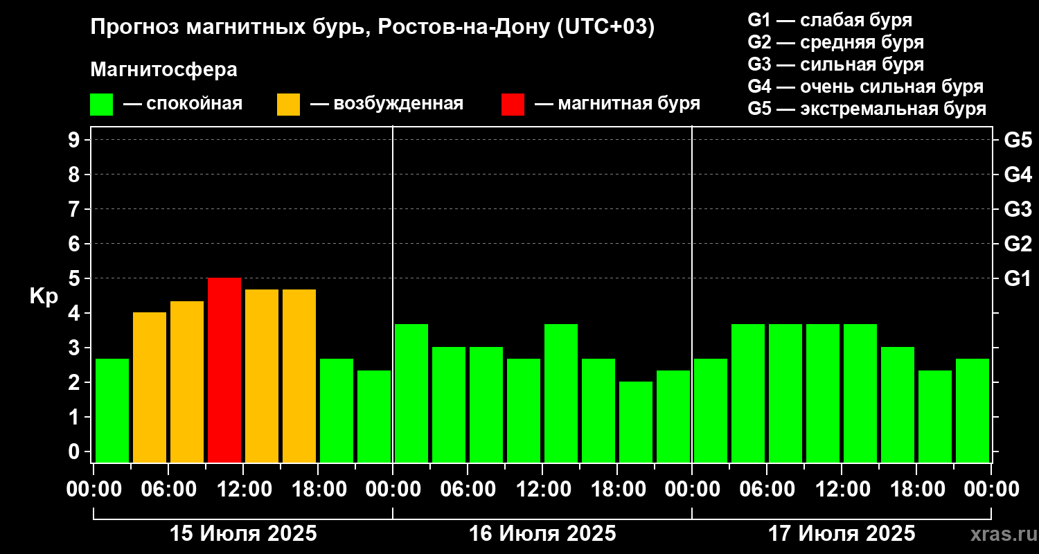 Прогноз магнитных бурь Ростове-на-Дону на 15 июля 2025 года