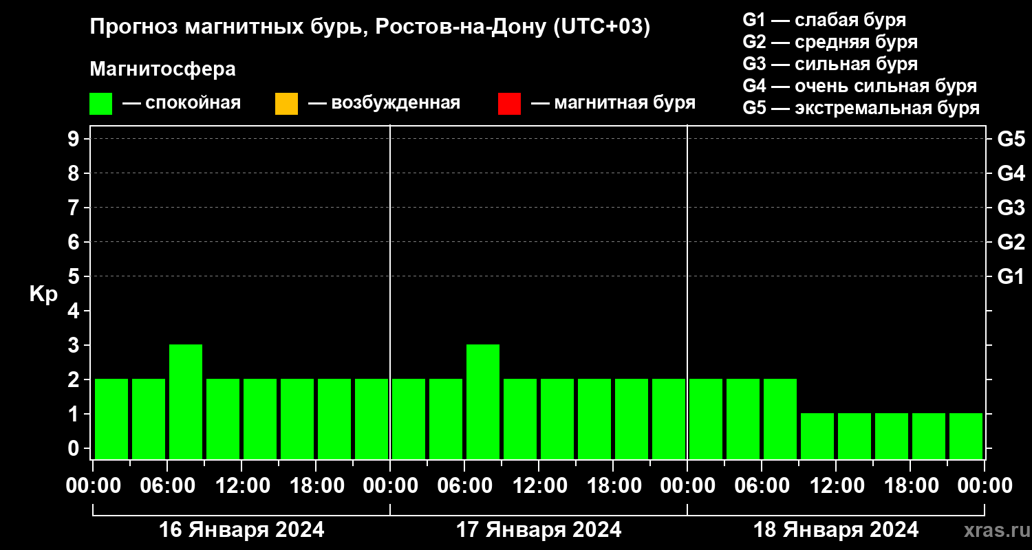 Прогноз магнитных бурь Ростове-на-Дону на 16 января 2024 года