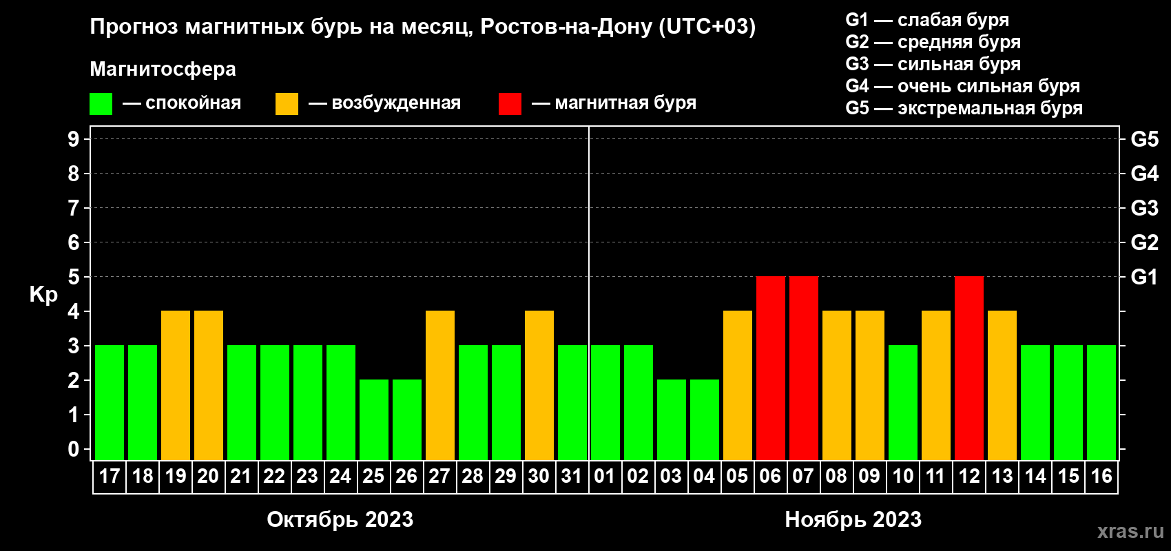 Прогноз магнитных бурь Ростове-на-Дону на 17 октября 2023 года