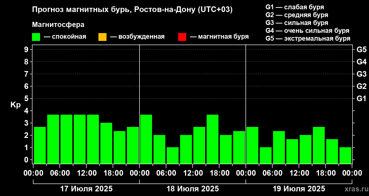 Прогноз магнитных бурь Ростове-на-Дону — 17 июля 2025 года