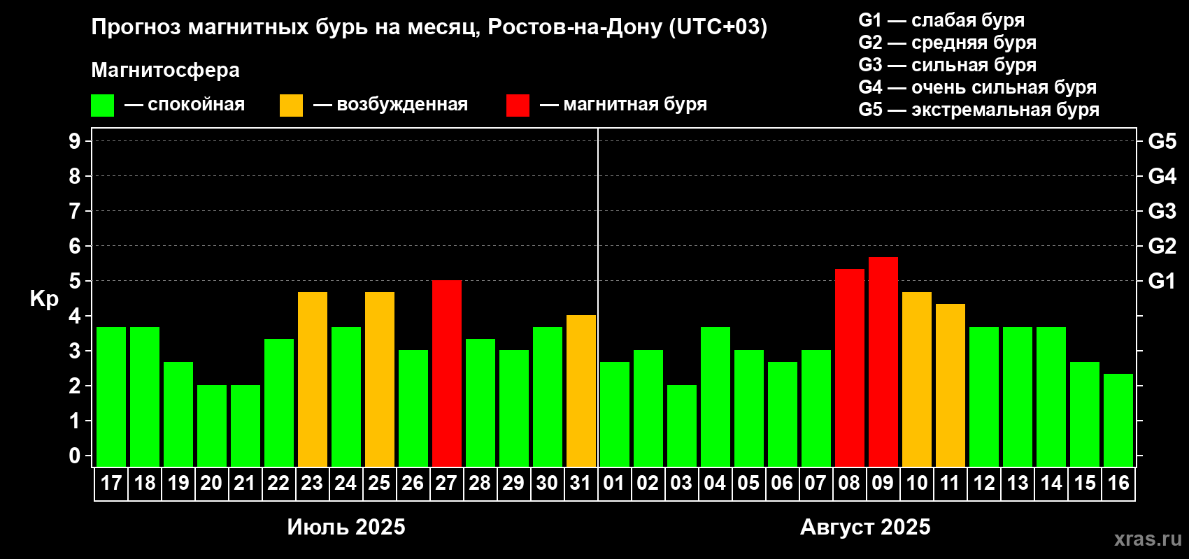 Прогноз магнитных бурь Ростове-на-Дону на 17 июля 2025 года