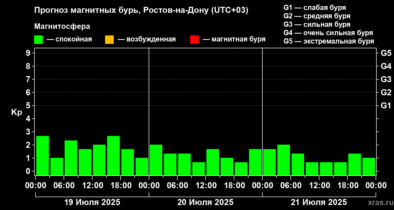 Прогноз магнитных бурь Ростове-на-Дону — 19 июля 2025 года