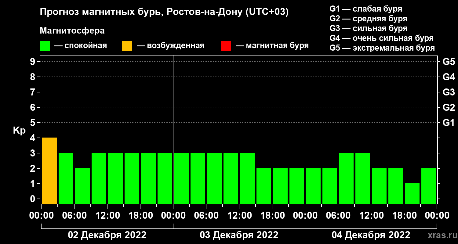 Прогноз магнитных бурь Ростове-на-Дону — 2 декабря 2022 года