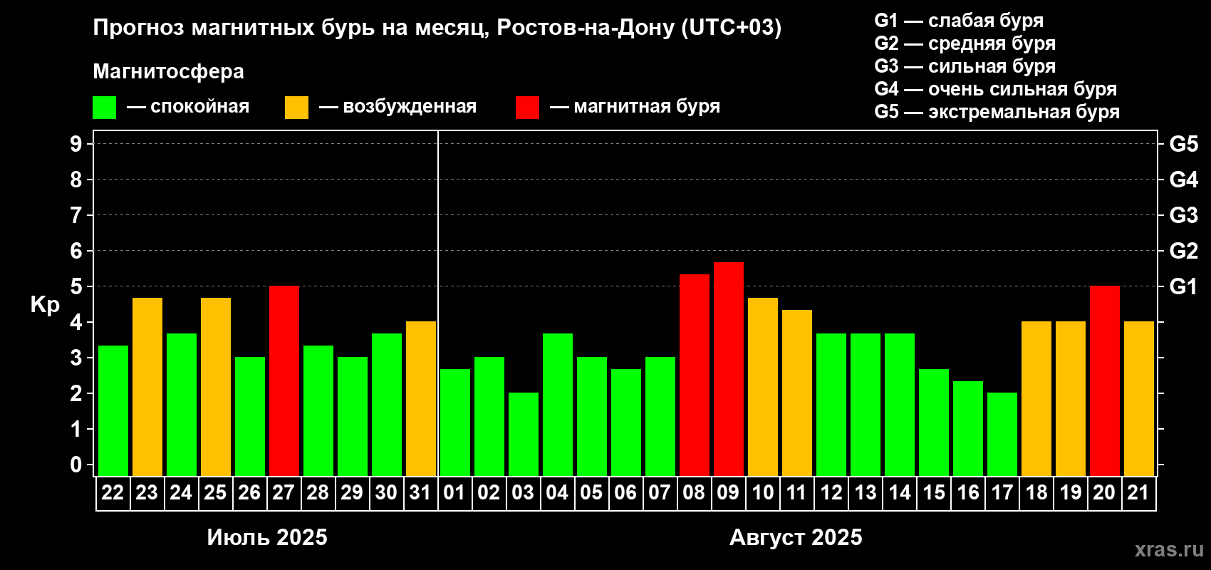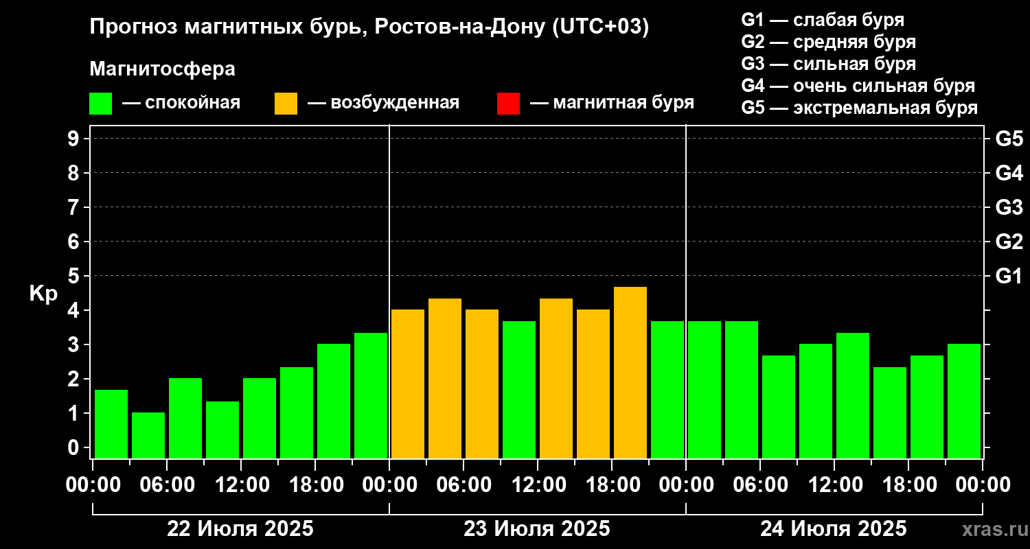 Прогноз магнитных бурь Ростове-на-Дону — 22 июля 2025 года