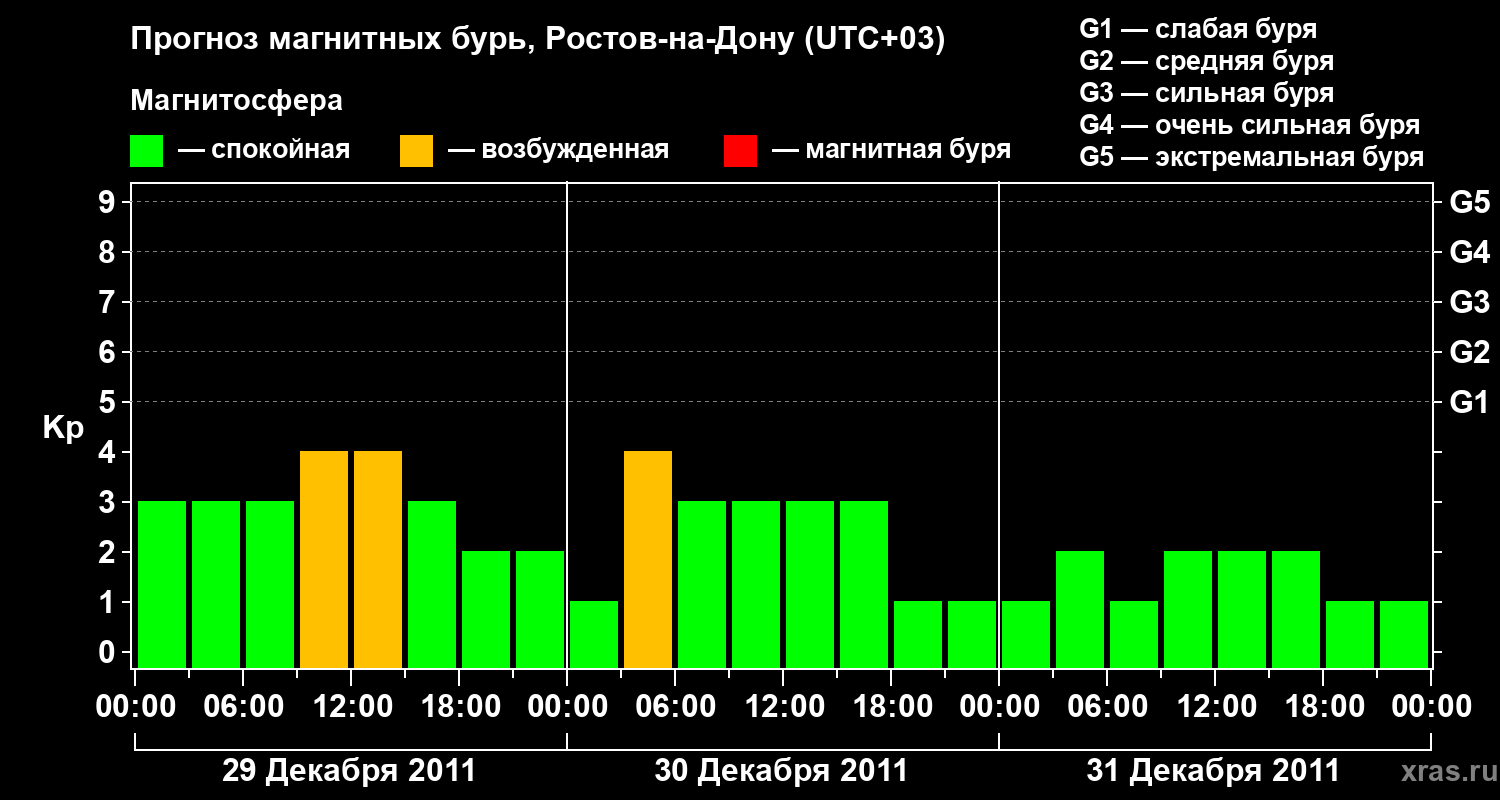 Прогноз магнитных бурь Ростове-на-Дону — 29 декабря 2011 года
