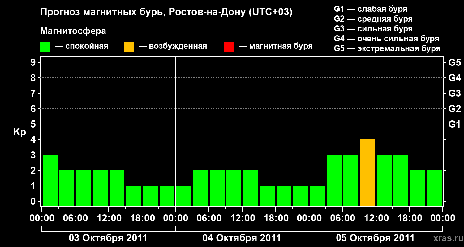 Прогноз магнитных бурь Ростове-на-Дону на 3 октября 2011 года