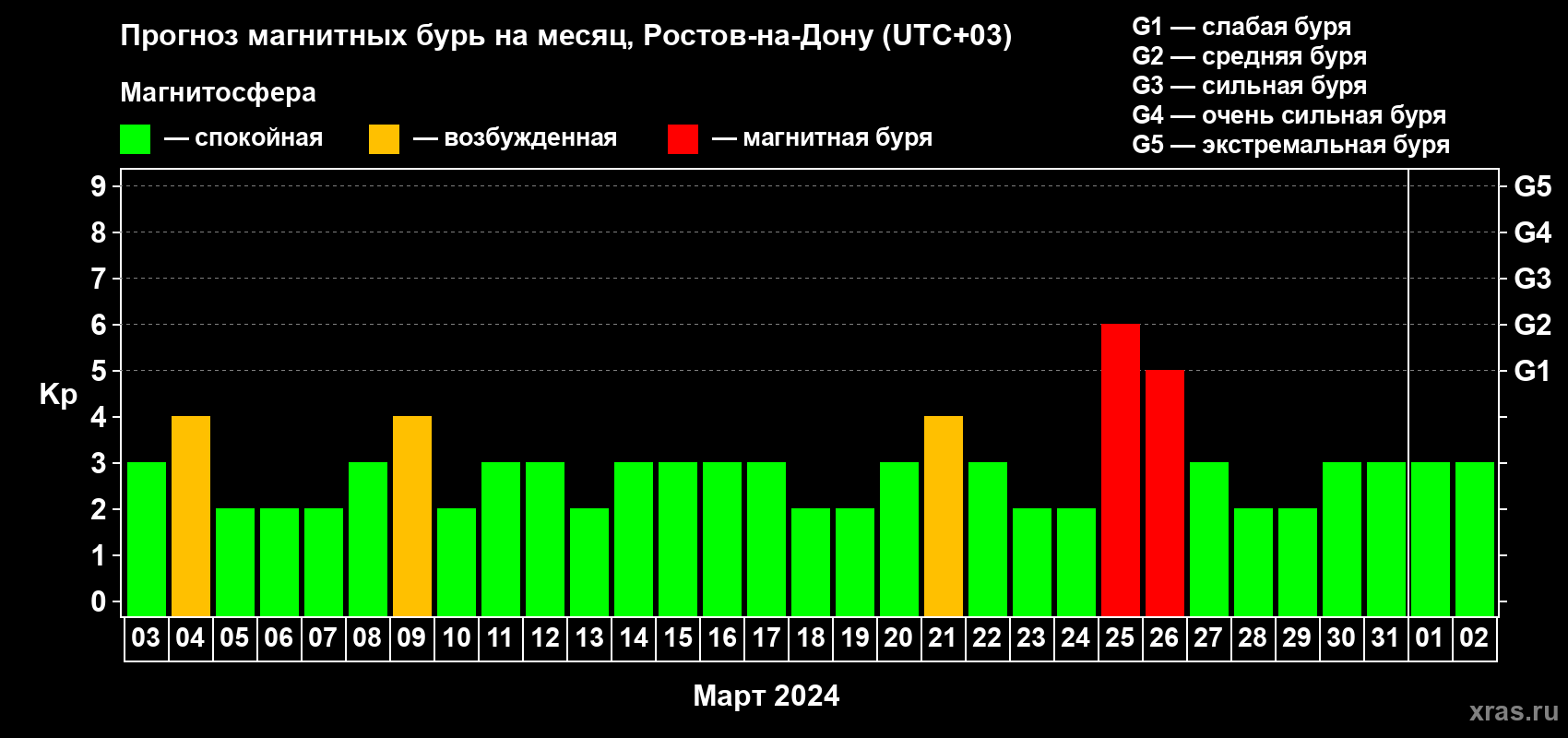 Прогноз магнитных бурь Ростове-на-Дону — 3 марта 2024 года