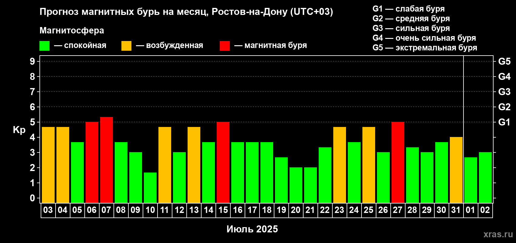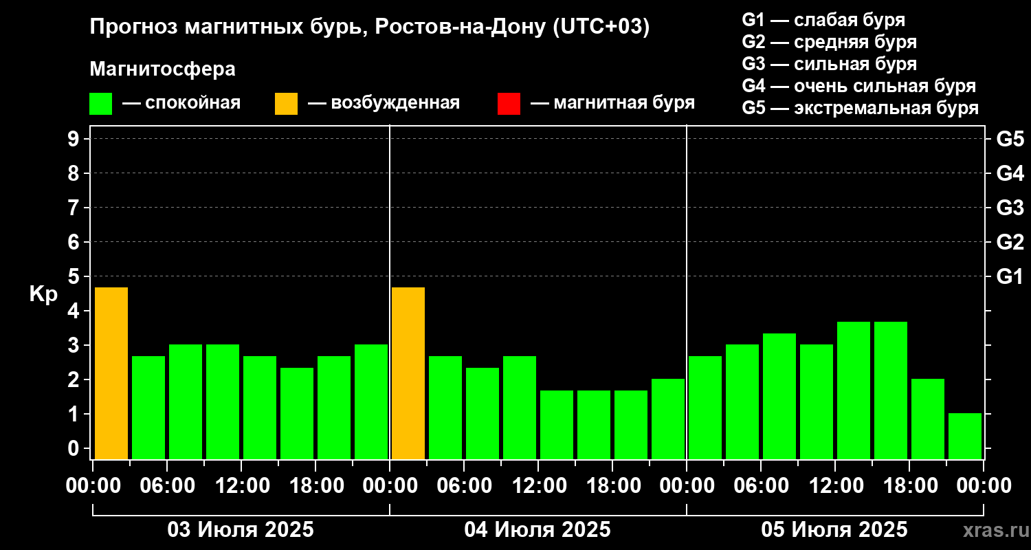 Прогноз магнитных бурь Ростове-на-Дону — 3 июля 2025 года