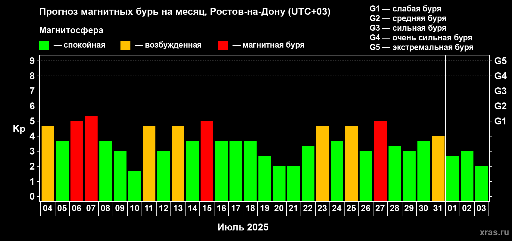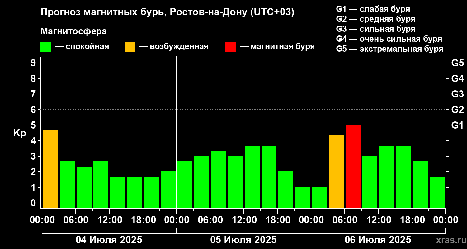 Прогноз магнитных бурь Ростове-на-Дону — 4 июля 2025 года