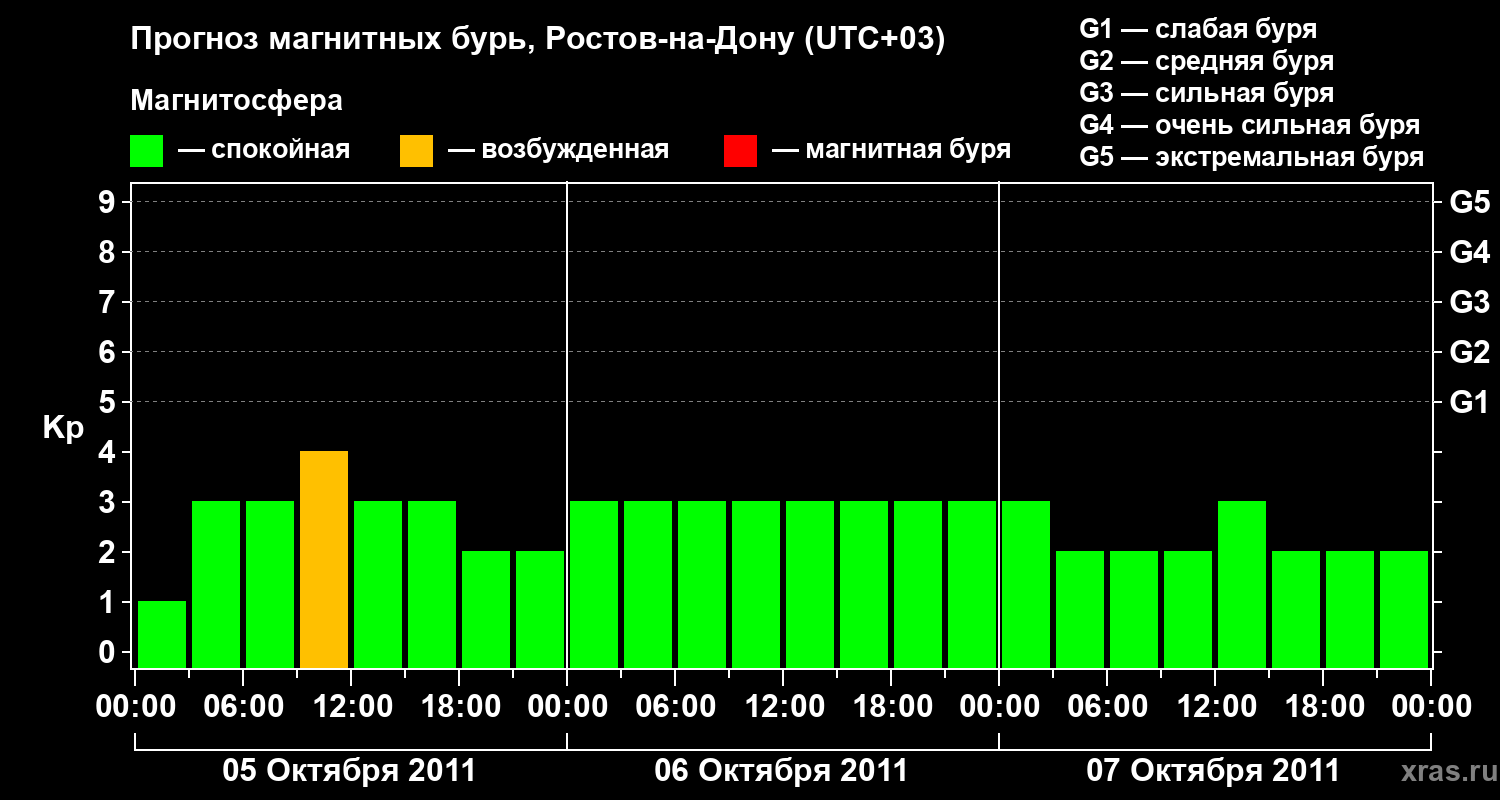 Прогноз магнитных бурь Ростове-на-Дону — 5 октября 2011 года