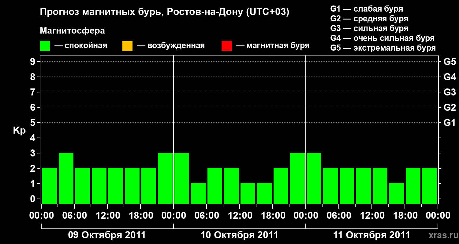 Прогноз магнитных бурь Ростове-на-Дону на 9 октября 2011 года