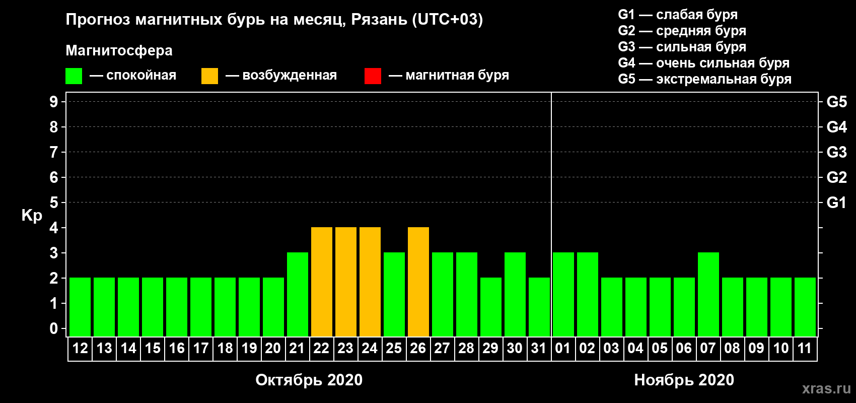 Прогноз магнитных бурь Рязани — 12 октября 2020 года