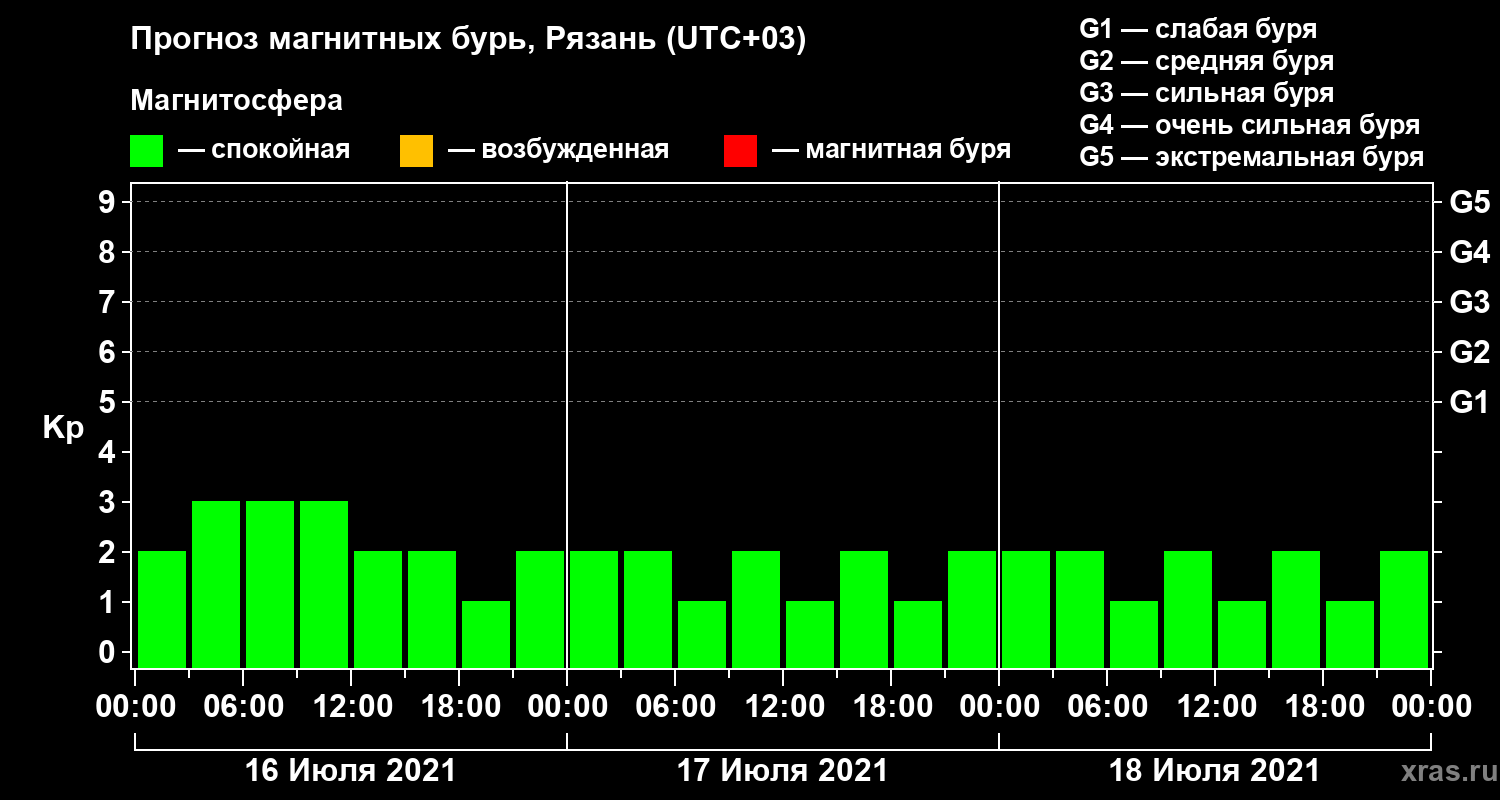 Прогноз магнитных бурь Рязани на 16 июля 2021 года