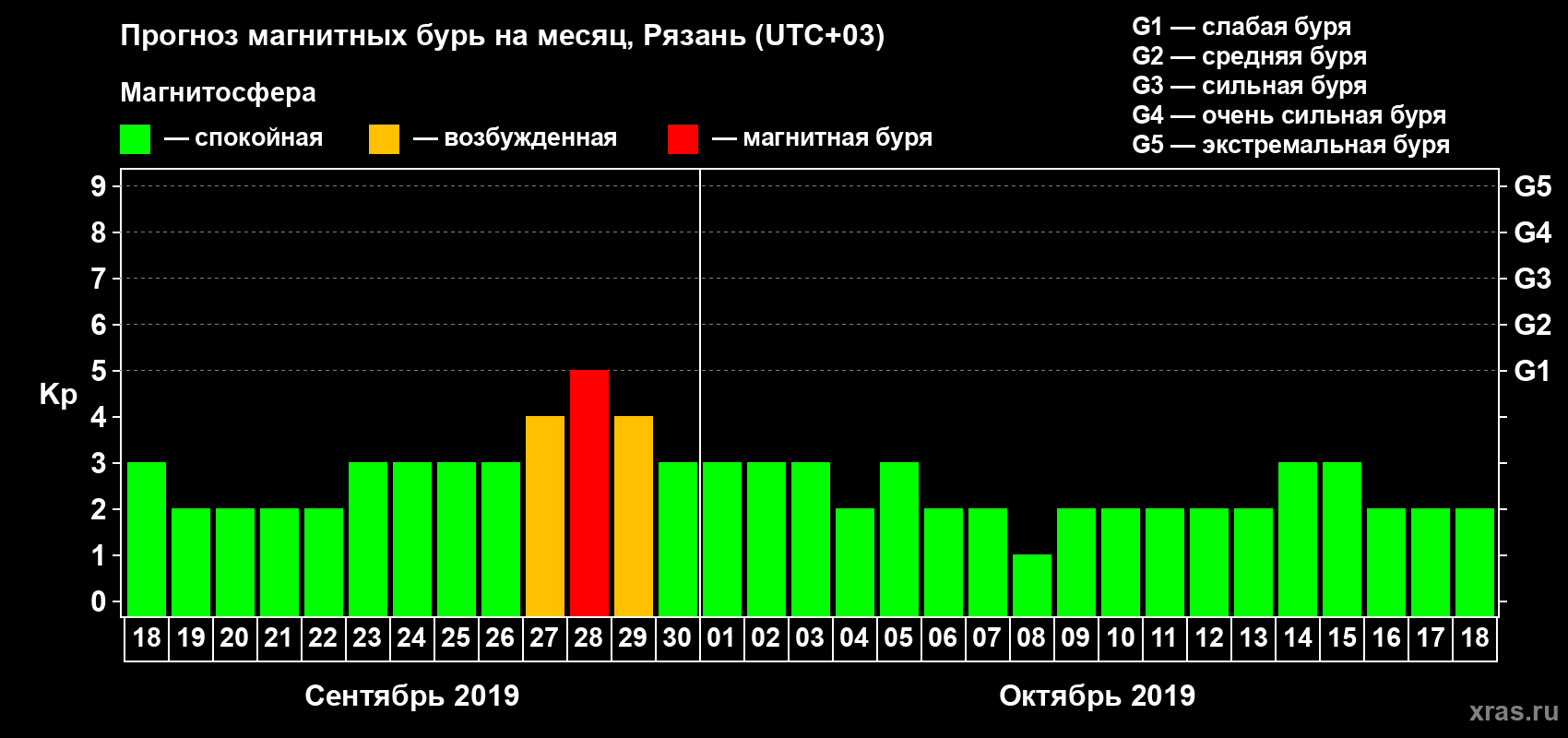 Прогноз магнитных бурь Рязани на 18 сентября 2019 года