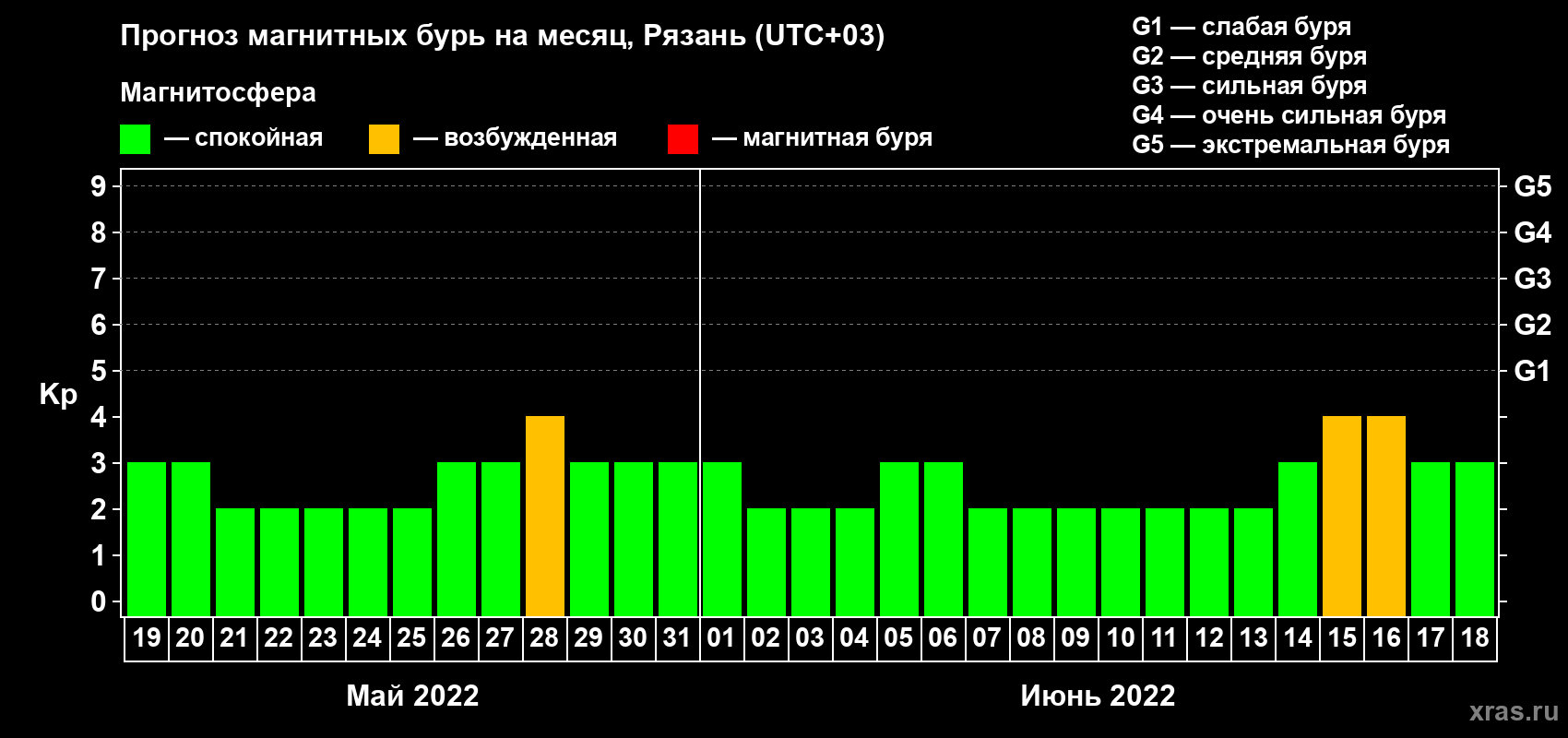 Прогноз магнитных бурь Рязани на 19 мая 2022 года