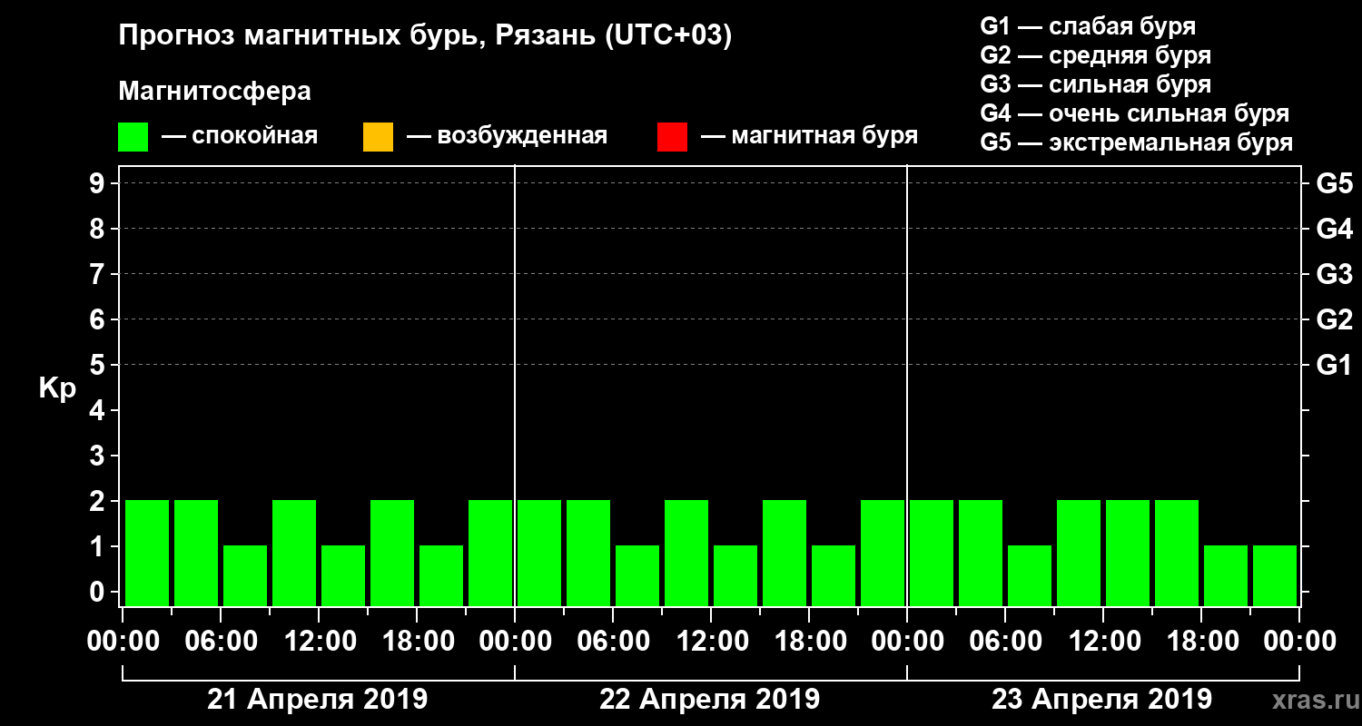 Прогноз магнитных бурь Рязани на 21 апреля 2019 года
