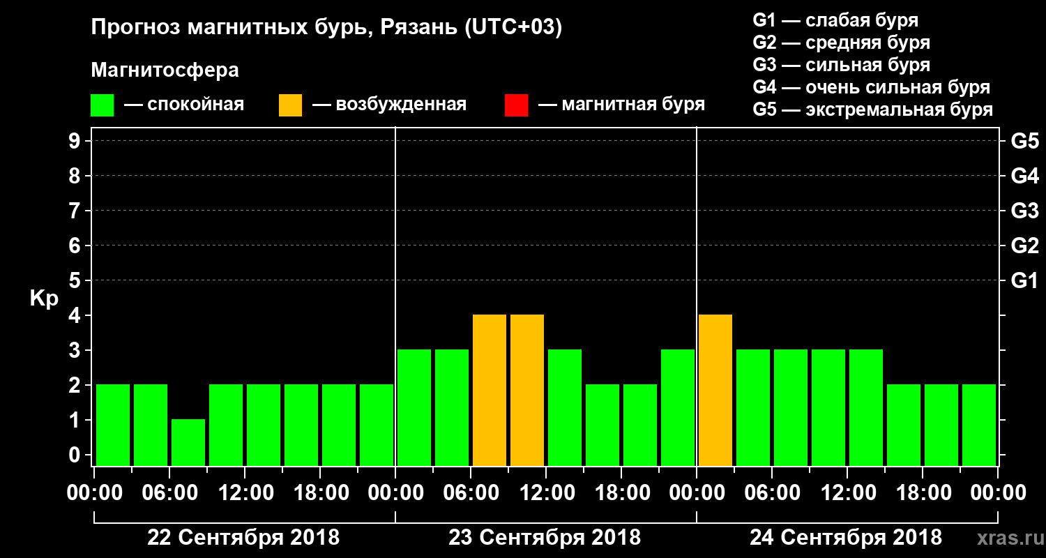 Прогноз магнитных бурь Рязани — 22 сентября 2018 года