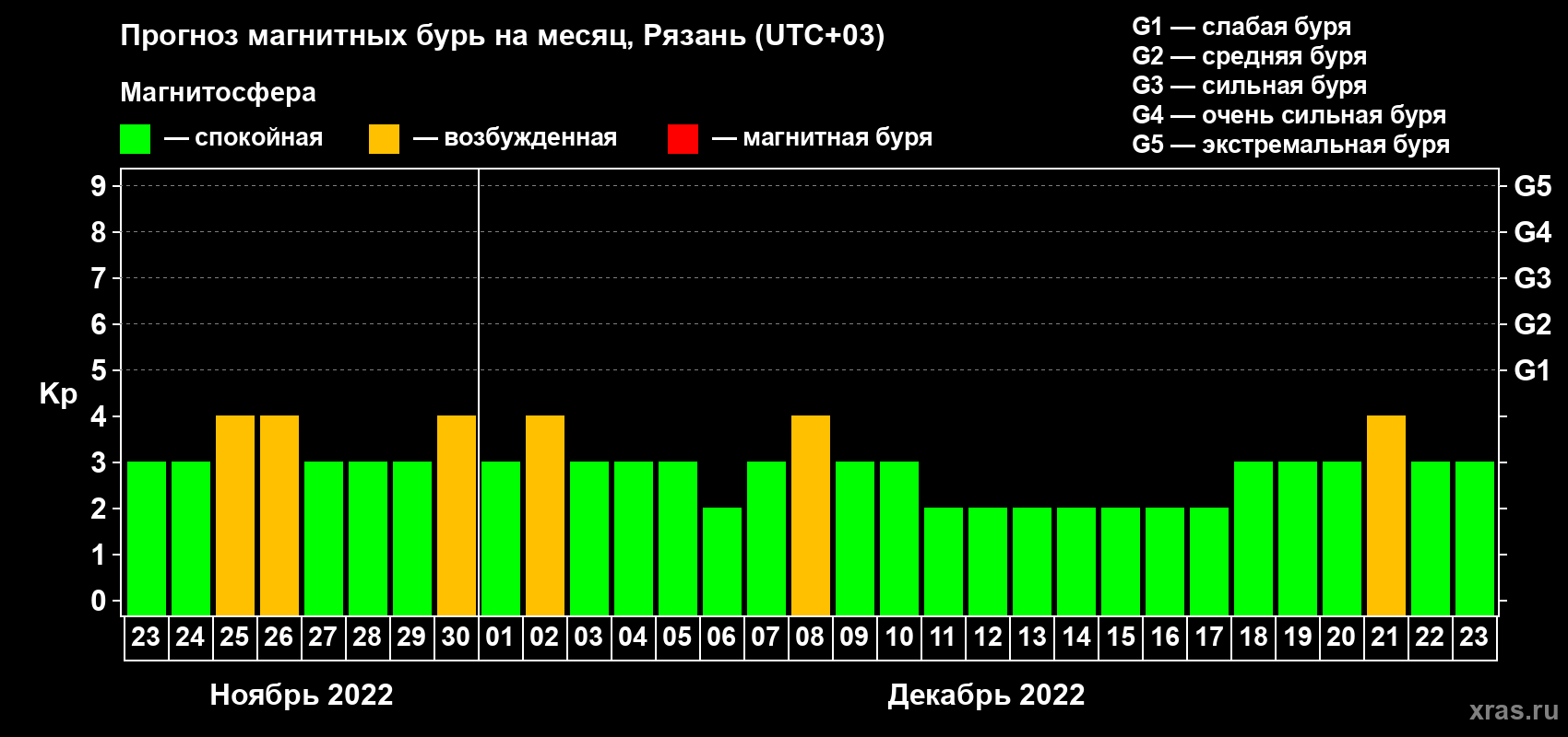 Прогноз магнитных бурь Рязани на 23 ноября 2022 года