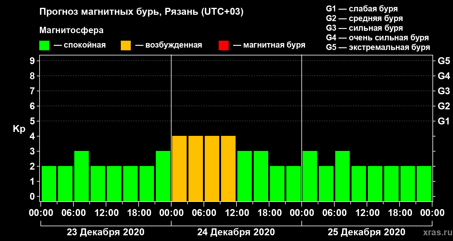 Прогноз магнитных бурь Рязани — 23 декабря 2020 года