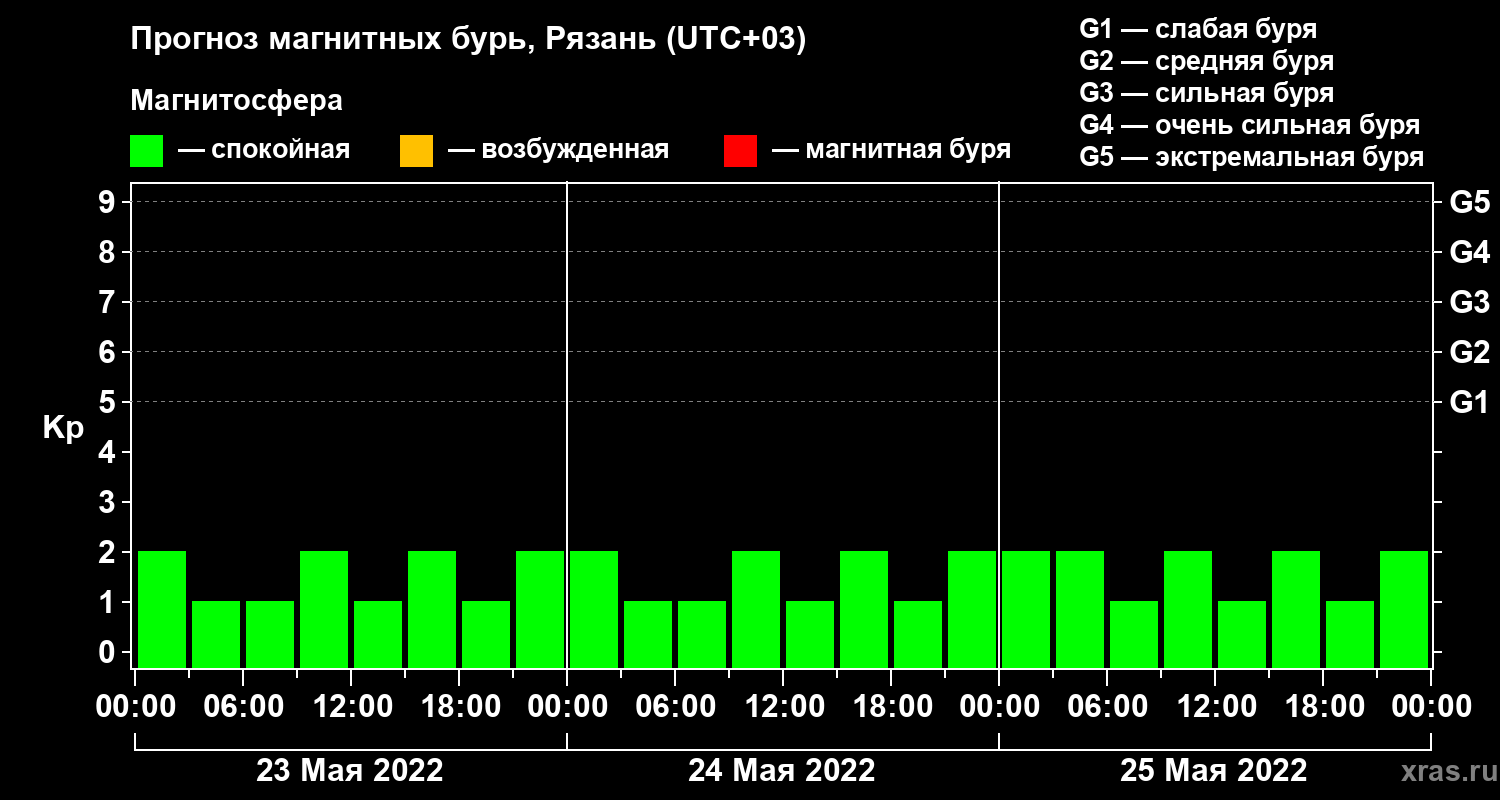 Прогноз магнитных бурь Рязани — 23 мая 2022 года