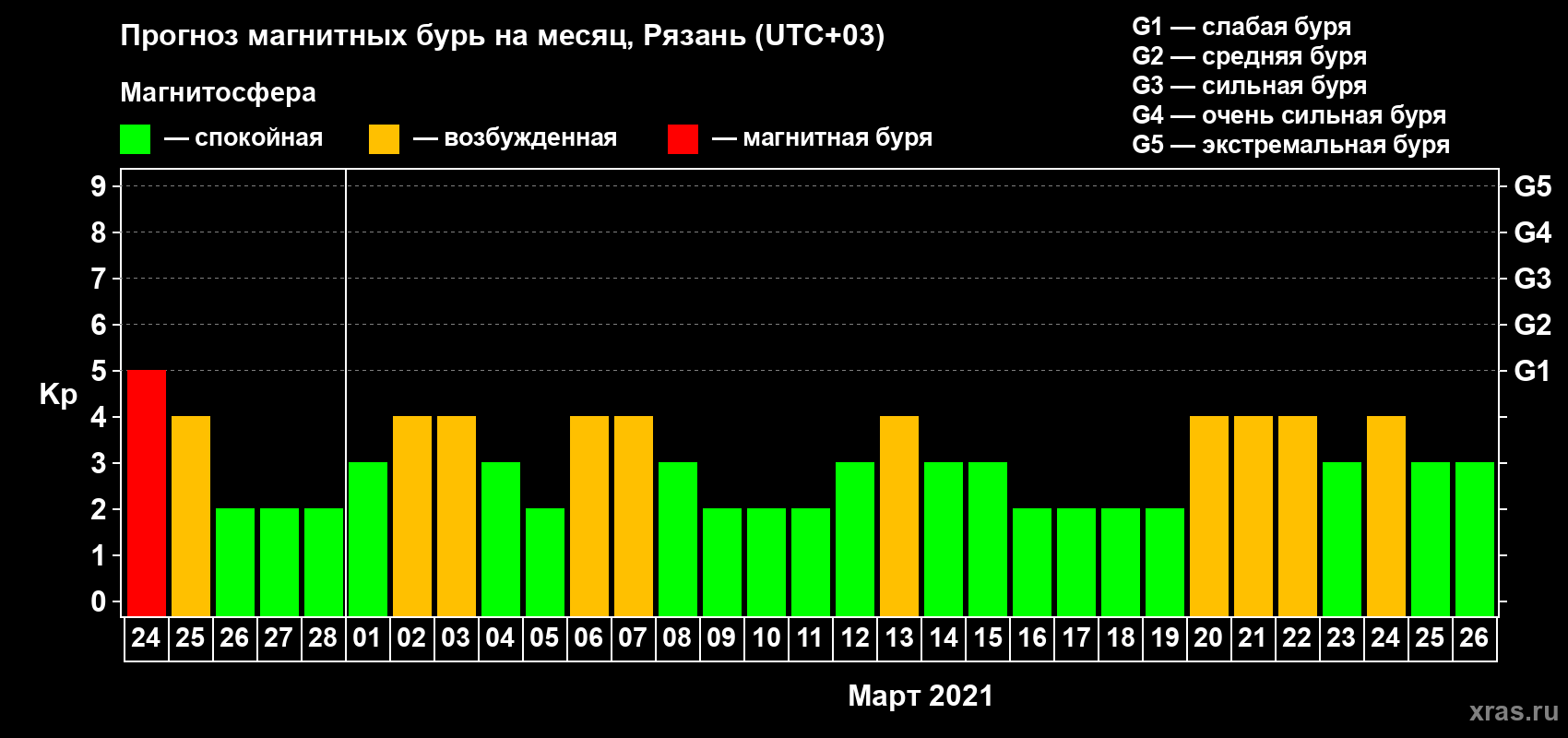 Прогноз магнитных бурь Рязани — 24 февраля 2021 года