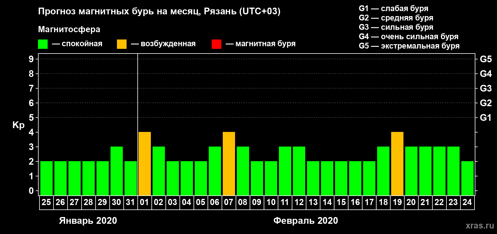 Прогноз магнитных бурь Рязани — 25 января 2020 года