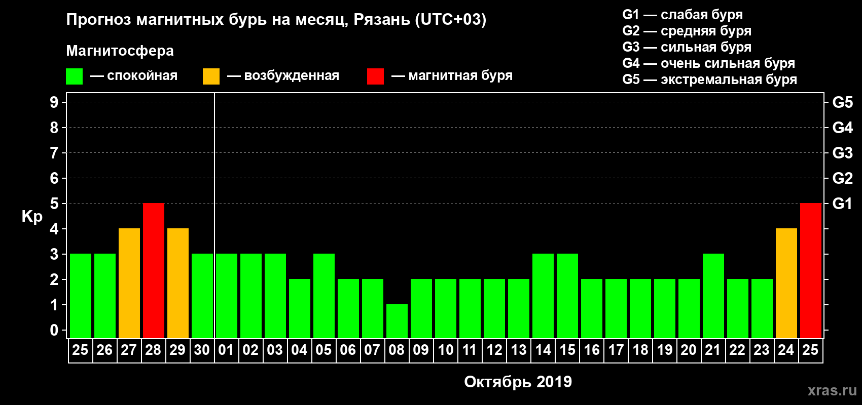 Прогноз магнитных бурь Рязани — 25 сентября 2019 года