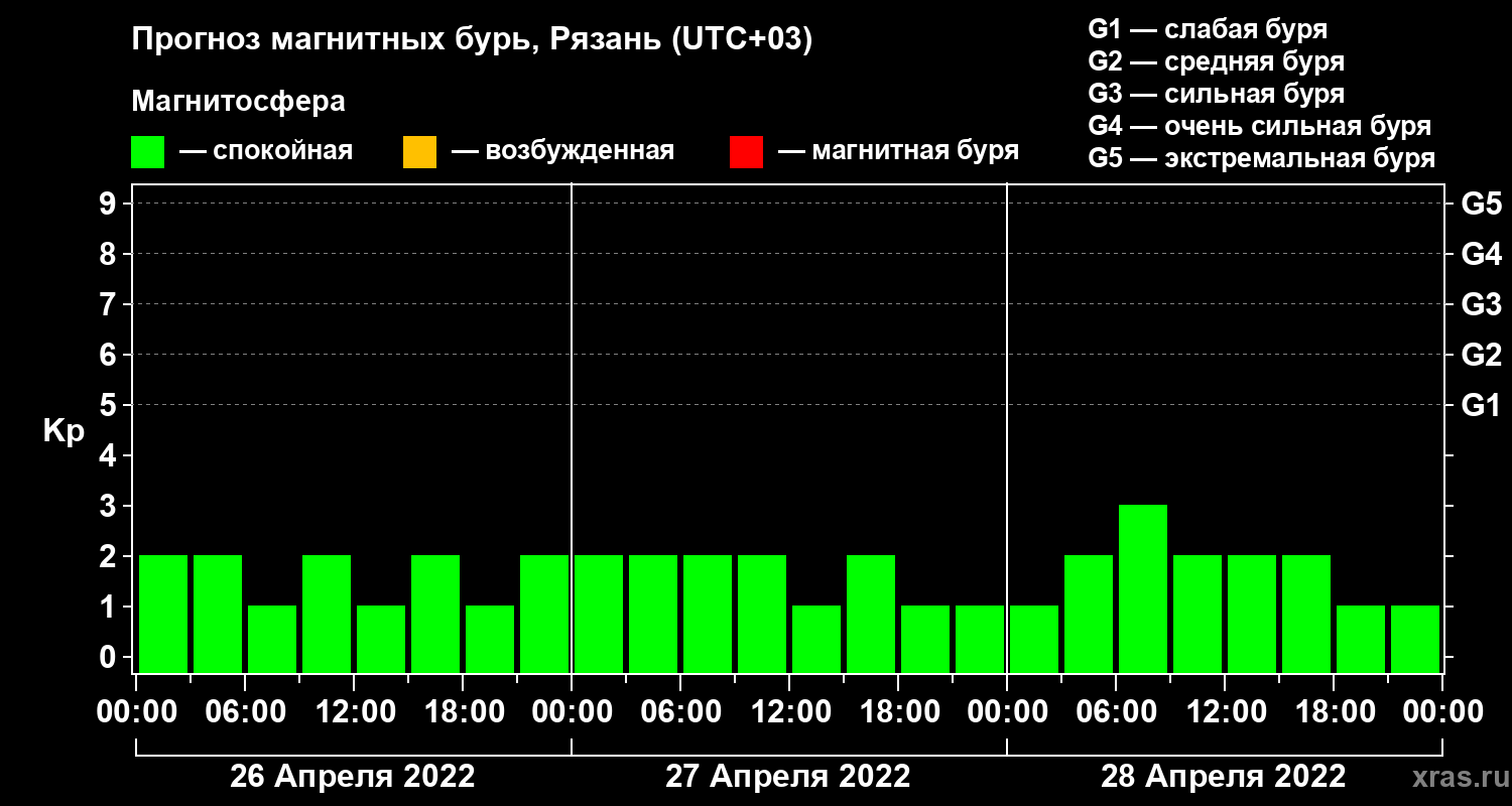 Прогноз магнитных бурь Рязани на 26 апреля 2022 года