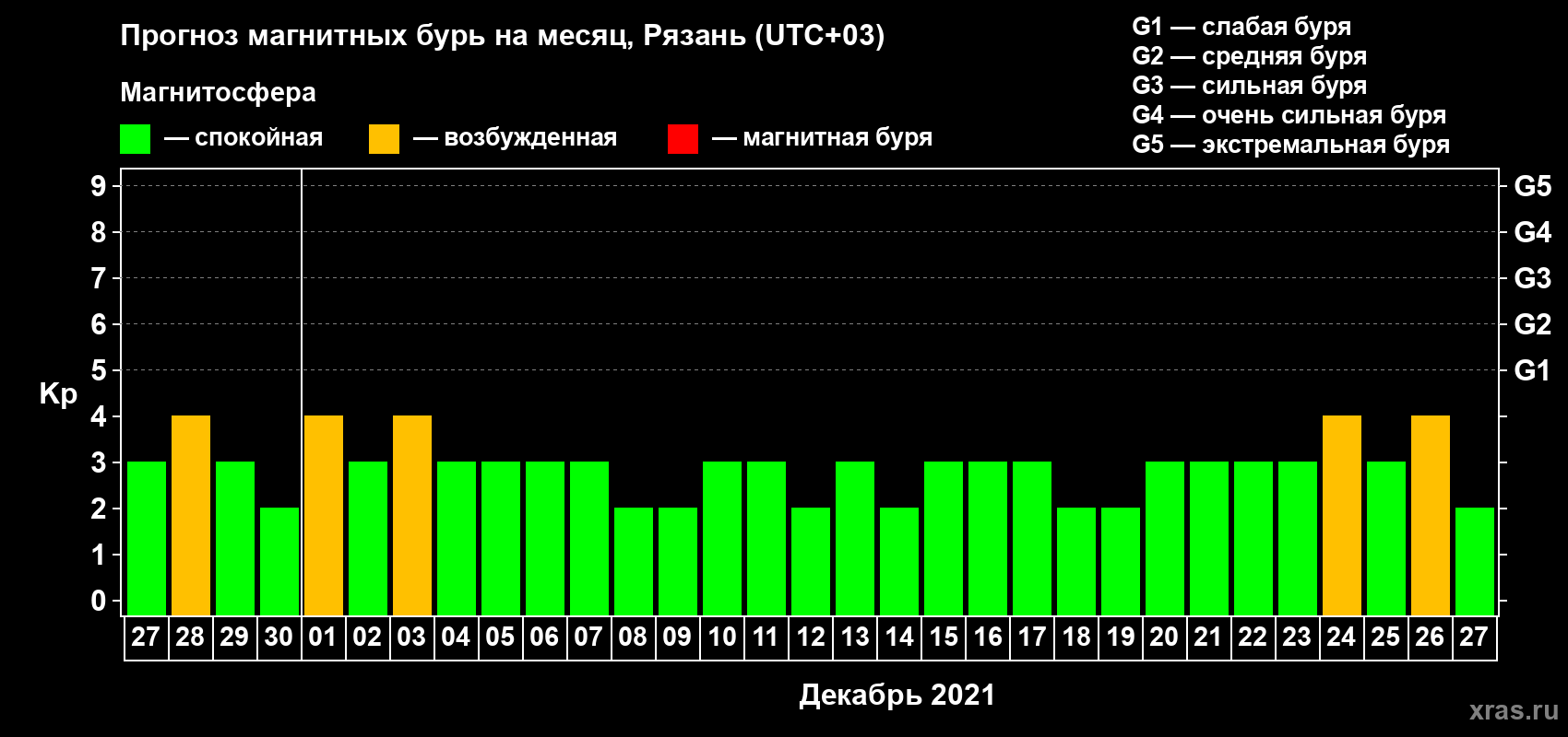 Прогноз магнитных бурь Рязани — 27 ноября 2021 года