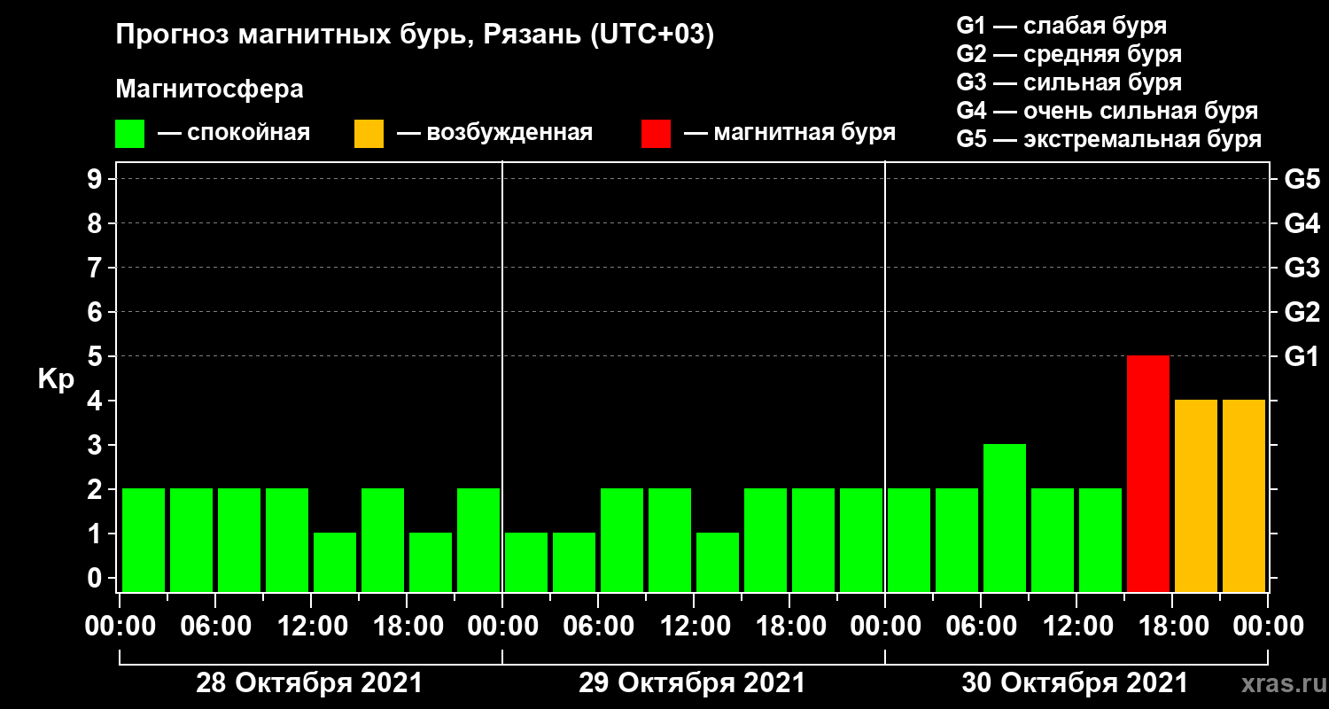 Прогноз магнитных бурь Рязани — 28 октября 2021 года
